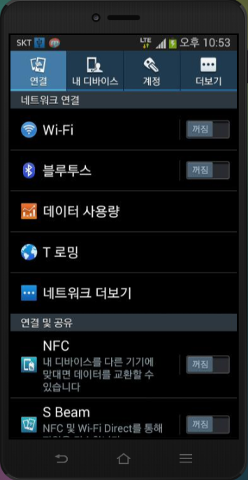 환경설정을 터치하면 ~~~~~~~~~~~!