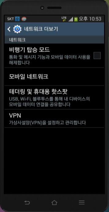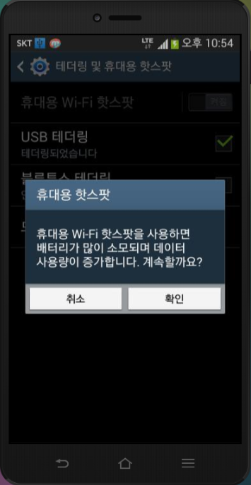 테더링 및 휴대용 핫스팟 설정방법,