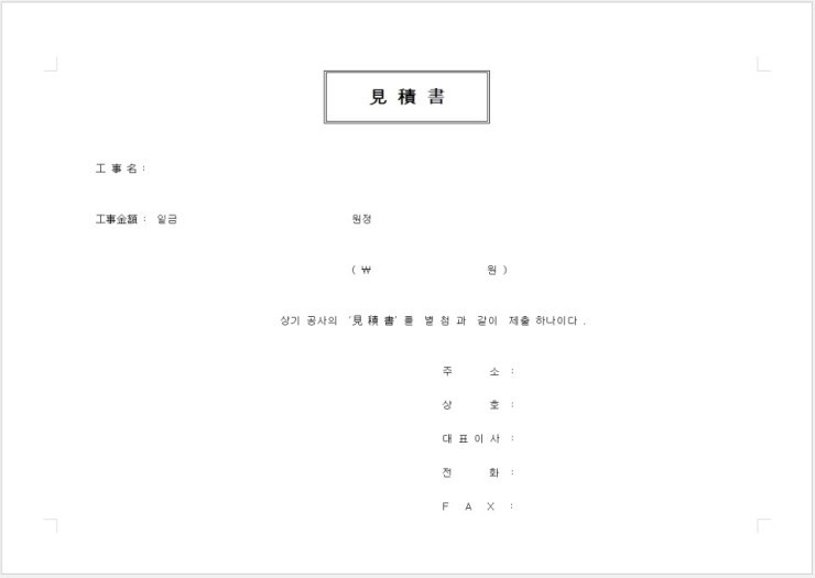[견적서표지(가로) 무료서식] 견적서표지(가로) 양식 무료서식입니다.