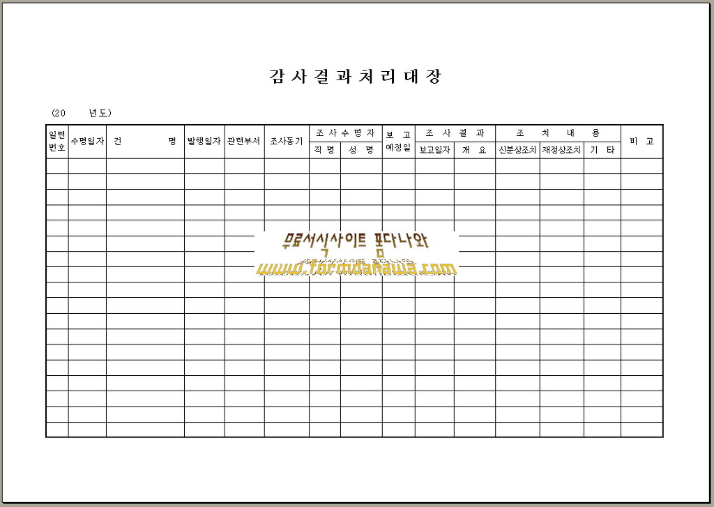 [감사결과 처리대장 무료서식(FREE FORM)] 감사결과 처리대장 양식 무료서식(FREE FORM)입니다.