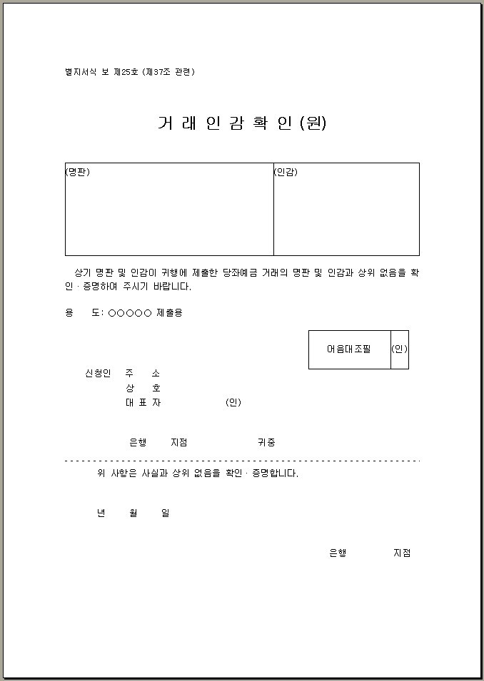[거래인감확인원 무료서식] 거래인감확인원 양식 무료서식입니다.