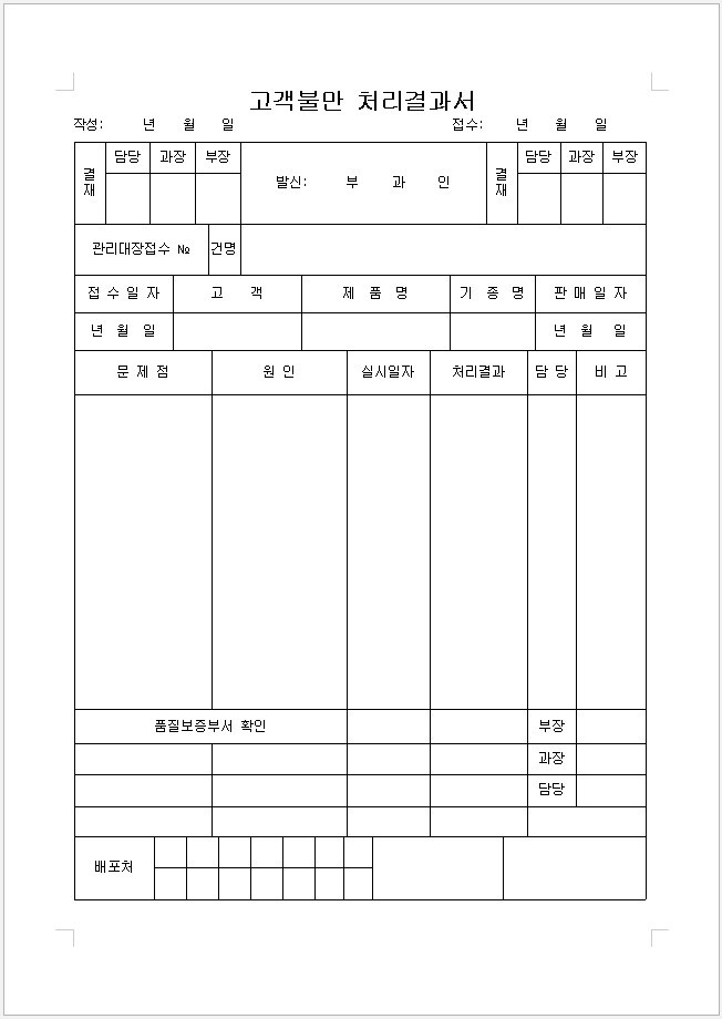 [고객불만 처리결과서 무료서식] 고객불만 처리결과서 양식 무료서식입니다.