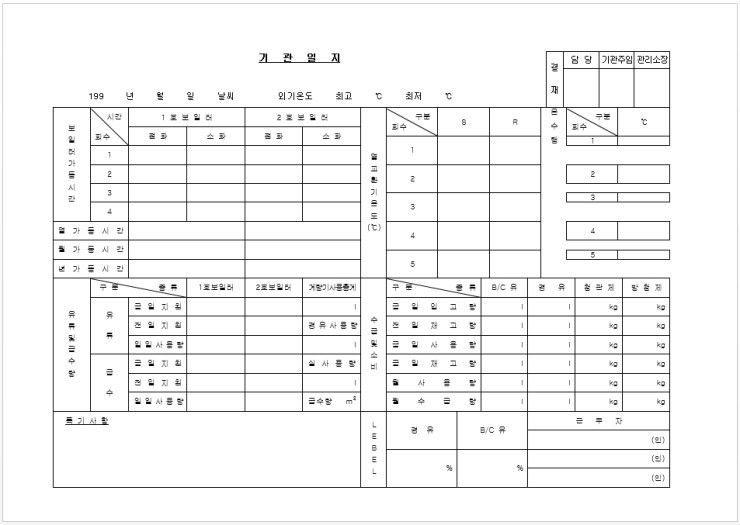 [기관일지 무료서식] 기관일지 양식 무료서식입니다.