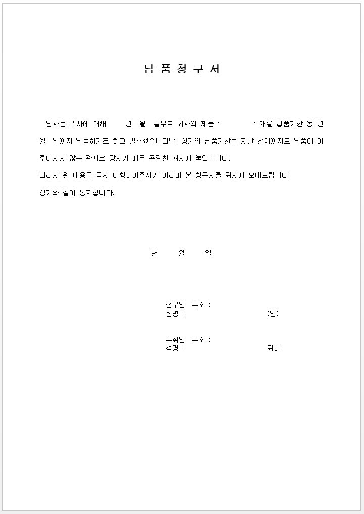 [납품청구서 무료서식] 납품청구서 양식 무료서식입니다.