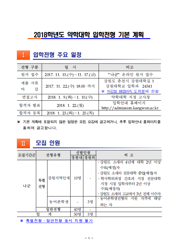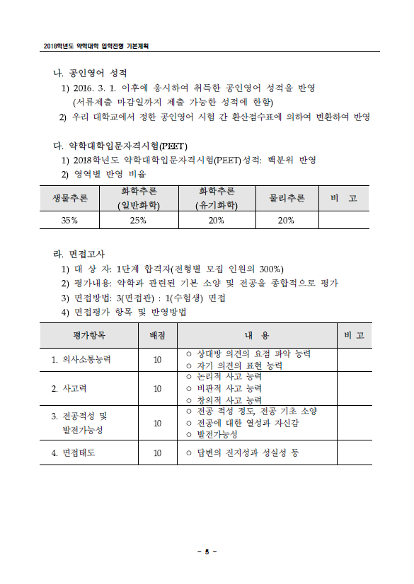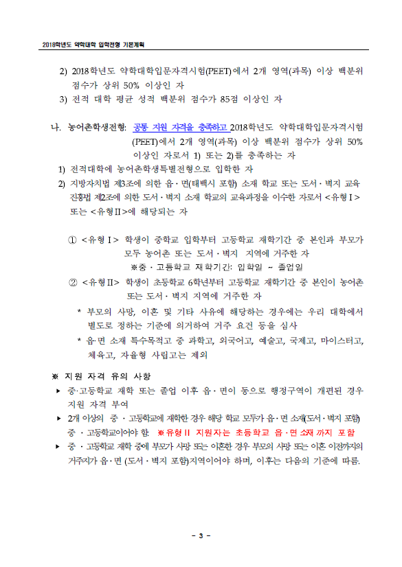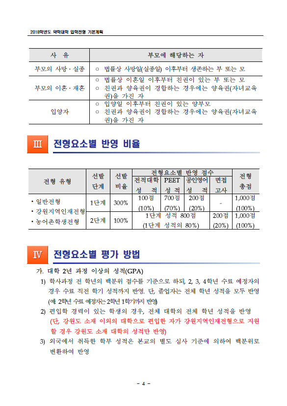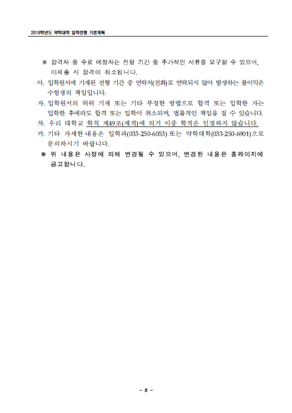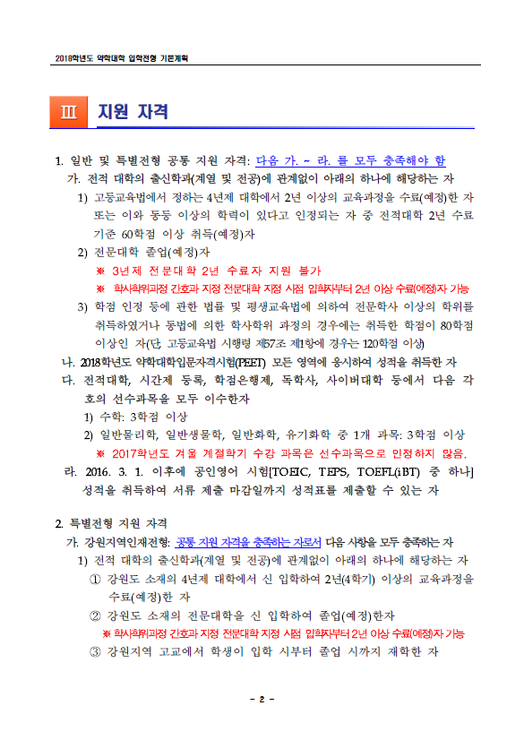 [기본계획]2018학년도 강원대학교 약학대학 입학전형 기본 계획 작성자Snow Flower|작성시간17.06.25|조회수1,176 목록 댓글 0 글자크기 작게가 글자크기 크게가 2018 약학대학 입학전형 기본 계획.pdf 첨부파일첨부된 파일이 10개 있습니다. png 파일 1.png 다운로드 png 파일 2.png 다운로드 png 파일 3.png 다운로드 png 파일 4.png 다운로드 png 파일 5.png 다운로드 png 파일 6.png 다운로드 png 파일 7.png 다운로드 png 파일 8.png 다운로드 png 파일 9.png 다운로드 pdf 파일 2018 약학대학 입학전형 기본 계획.pdf 다운로드 다음검색 현재 게시글 추가 기능 열기 북마크 공유하기 신고 센터로 신고 댓글 댓글 0 댓글쓰기 답글쓰기 댓글 리스트