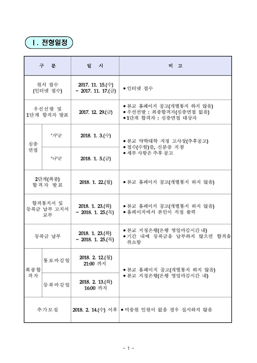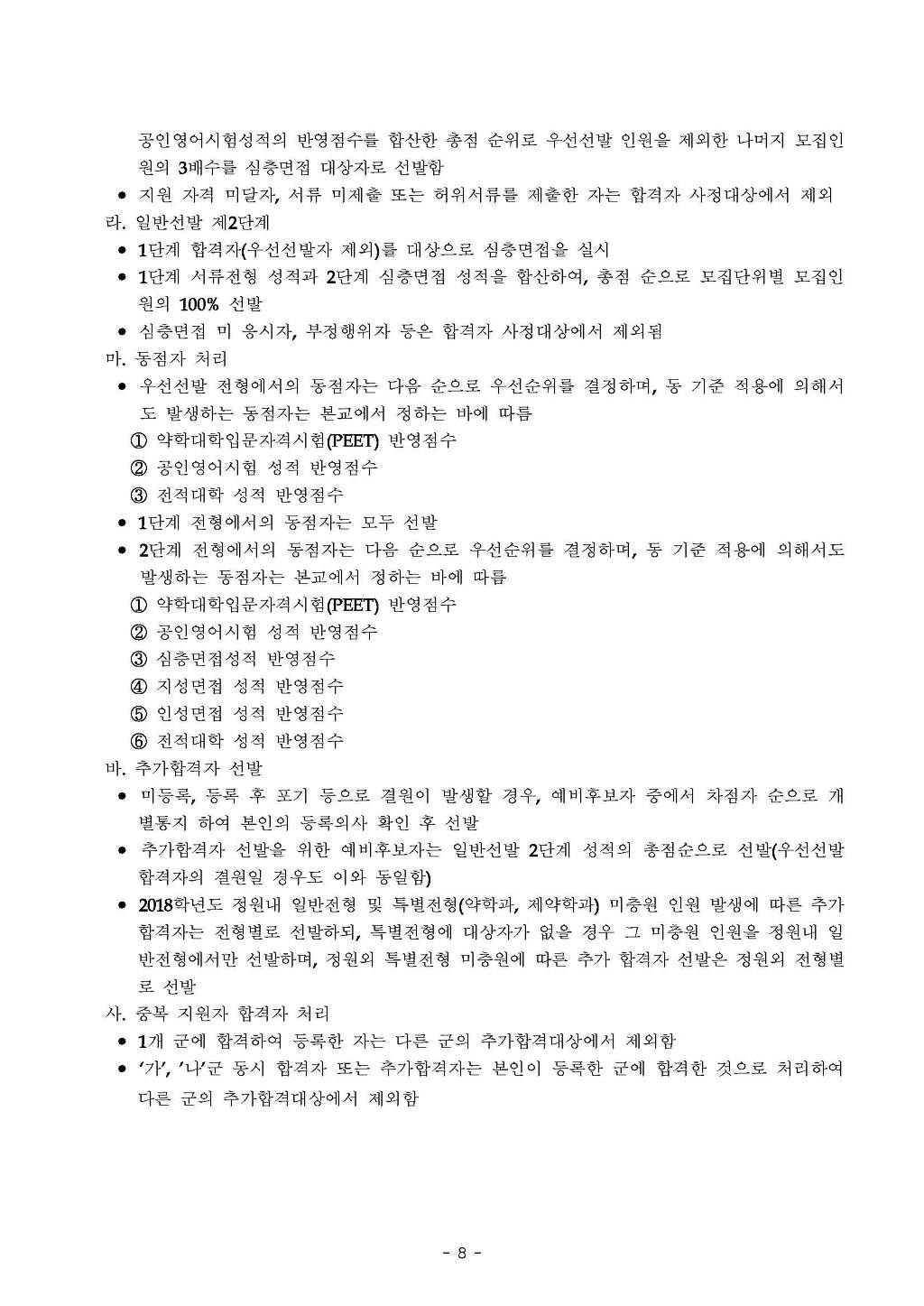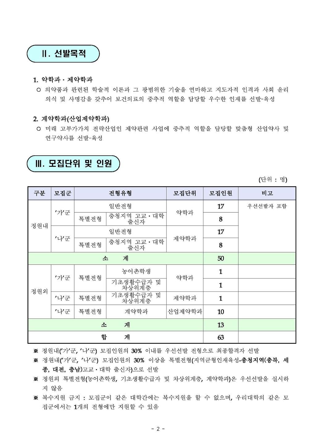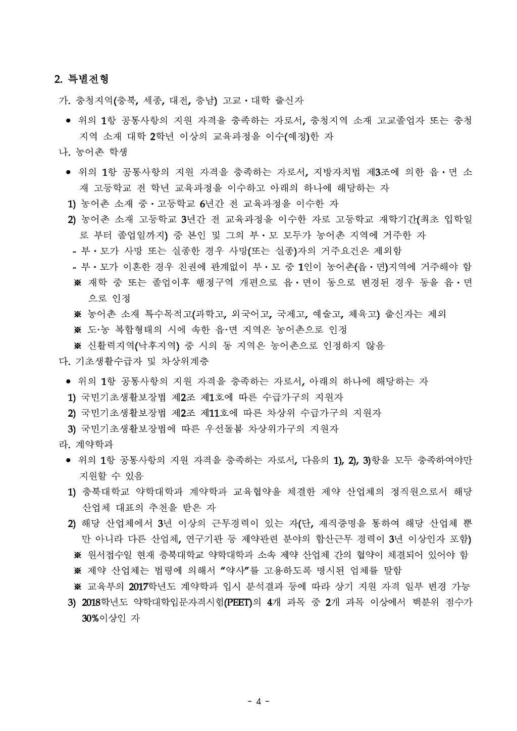 [기본계획]2018학년도 충북대 약학대학 입학전형 기본계획 작성자kpeet|작성시간17.06.27|조회수1,148 목록 댓글 0 글자크기 작게가 글자크기 크게가 2018학년도 약학대학 입학전형 기본계획.pdf 첨부파일첨부된 파일이 14개 있습니다. jpg 파일 2018학년도 약학대학 입학전형 기본계획_페이지_01.jpg 다운로드 jpg 파일 2018학년도 약학대학 입학전형 기본계획_페이지_02.jpg 다운로드 jpg 파일 2018학년도 약학대학 입학전형 기본계획_페이지_03.jpg 다운로드 jpg 파일 2018학년도 약학대학 입학전형 기본계획_페이지_04.jpg 다운로드 jpg 파일 2018학년도 약학대학 입학전형 기본계획_페이지_05.jpg 다운로드 jpg 파일 2018학년도 약학대학 입학전형 기본계획_페이지_06.jpg 다운로드 jpg 파일 2018학년도 약학대학 입학전형 기본계획_페이지_07.jpg 다운로드 jpg 파일 2018학년도 약학대학 입학전형 기본계획_페이지_08.jpg 다운로드 jpg 파일 2018학년도 약학대학 입학전형 기본계획_페이지_09.jpg 다운로드 jpg 파일 2018학년도 약학대학 입학전형 기본계획_페이지_10.jpg 다운로드 jpg 파일 2018학년도 약학대학 입학전형 기본계획_페이지_11.jpg 다운로드 jpg 파일 2018학년도 약학대학 입학전형 기본계획_페이지_12.jpg 다운로드 jpg 파일 2018학년도 약학대학 입학전형 기본계획_페이지_13.jpg 다운로드 pdf 파일 2018학년도 약학대학 입학전형 기본계획.pdf 다운로드 다음검색 현재 게시글 추가 기능 열기 북마크 공유하기 신고 센터로 신고 댓글 댓글 0 댓글쓰기 답글쓰기 댓글 리스트