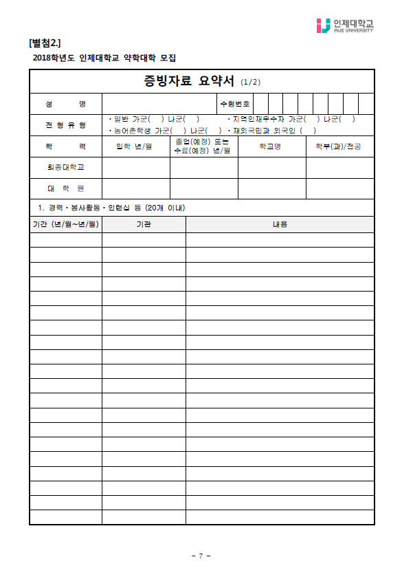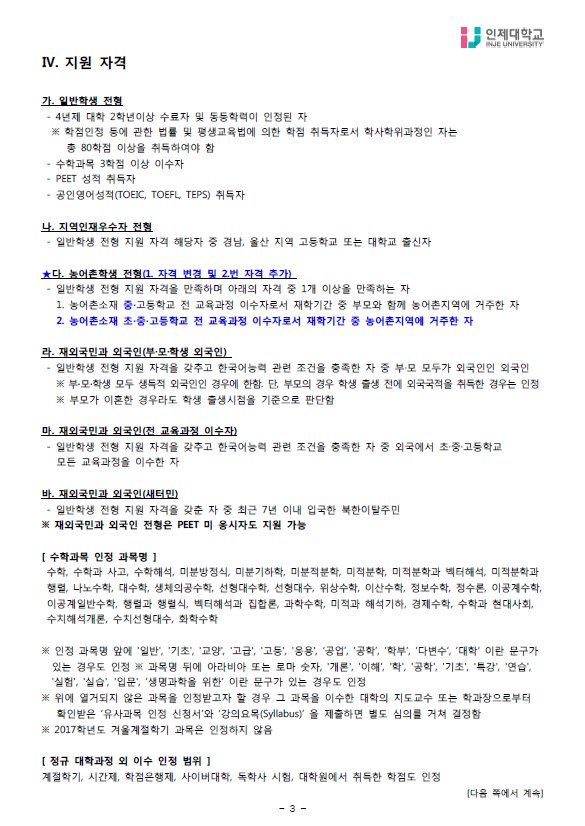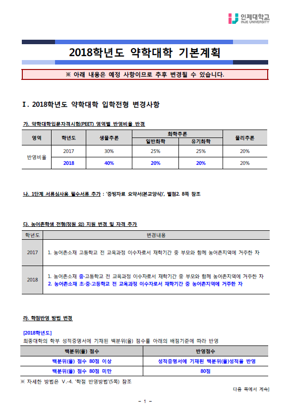 [기본계획]2018학년도 인제대학교 약학대학 편입학전형 기본계획 작성자Snow Flower|작성시간17.07.07|조회수1,114 목록 댓글 0 글자크기 작게가 글자크기 크게가 [인제대학교] 2018학년도 약학대학 기본계획(20170620).hwp [인제대학교] 2018학년도 약학대학 기본계획(20170620).pdf 첨부파일첨부된 파일이 11개 있습니다. png 파일 1.png 다운로드 png 파일 2.png 다운로드 png 파일 3.png 다운로드 png 파일 4.png 다운로드 png 파일 5.png 다운로드 png 파일 6.png 다운로드 png 파일 7.png 다운로드 png 파일 8.png 다운로드 png 파일 9.png 다운로드 hwp 파일 [인제대학교] 2018학년도 약학대학 기본계획(20170620).hwp 다운로드 pdf 파일 [인제대학교] 2018학년도 약학대학 기본계획(20170620).pdf 다운로드 다음검색 현재 게시글 추가 기능 열기 북마크 공유하기 신고 센터로 신고 댓글 댓글 0 댓글쓰기 답글쓰기 댓글 리스트