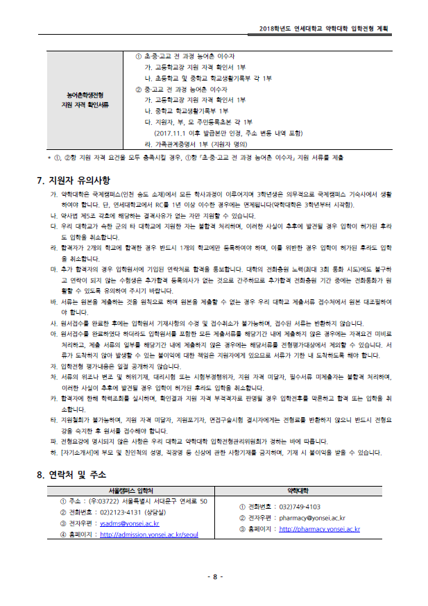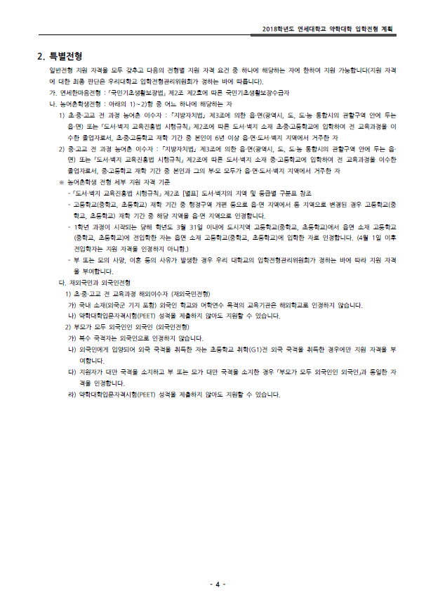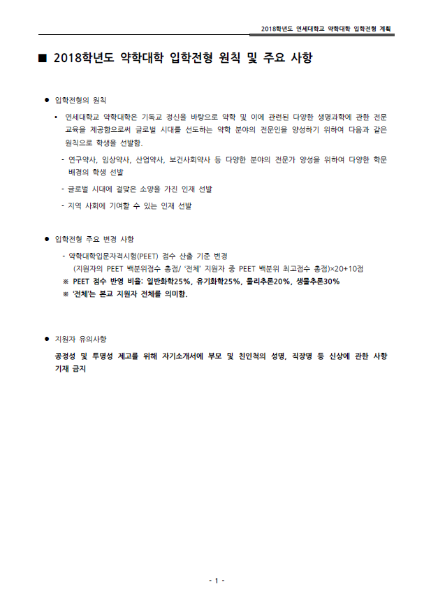 [기본계획]2018학년도 연세대학교 약학대학 편입학전형 기본계획 작성자Snow Flower|작성시간17.07.13|조회수1,504 목록 댓글 0 글자크기 작게가 글자크기 크게가 2018_phar_plan.pdf 첨부파일첨부된 파일이 11개 있습니다. png 파일 1.png 다운로드 png 파일 2.png 다운로드 png 파일 3.png 다운로드 png 파일 4.png 다운로드 png 파일 5.png 다운로드 png 파일 6.png 다운로드 png 파일 7.png 다운로드 png 파일 8.png 다운로드 png 파일 9.png 다운로드 png 파일 10.png 다운로드 pdf 파일 2018_phar_plan.pdf 다운로드 다음검색 현재 게시글 추가 기능 열기 북마크 공유하기 신고 센터로 신고 댓글 댓글 0 댓글쓰기 답글쓰기 댓글 리스트