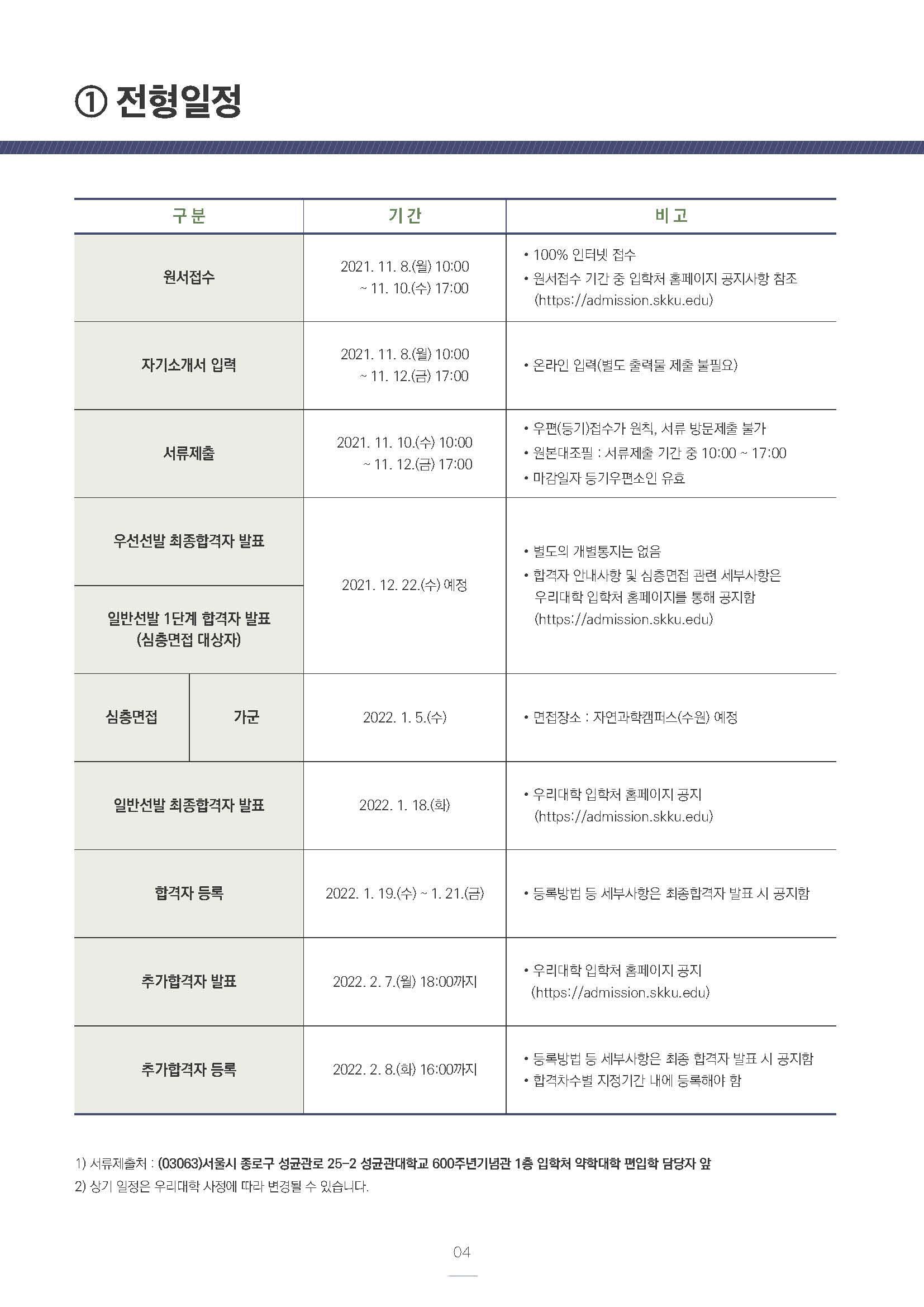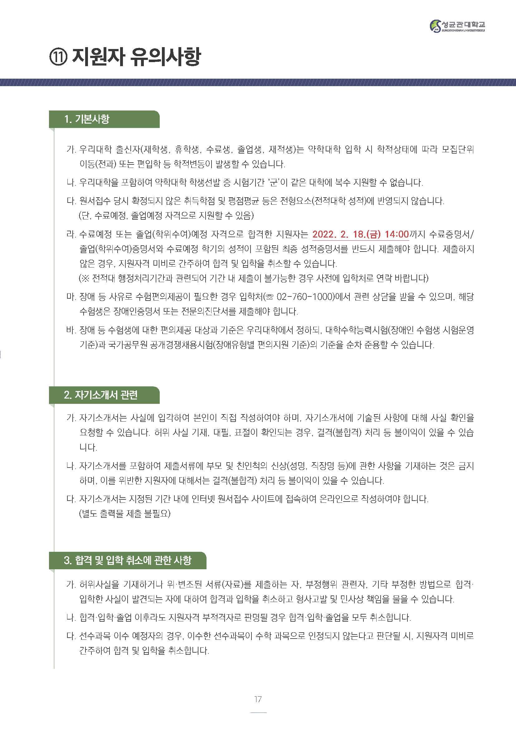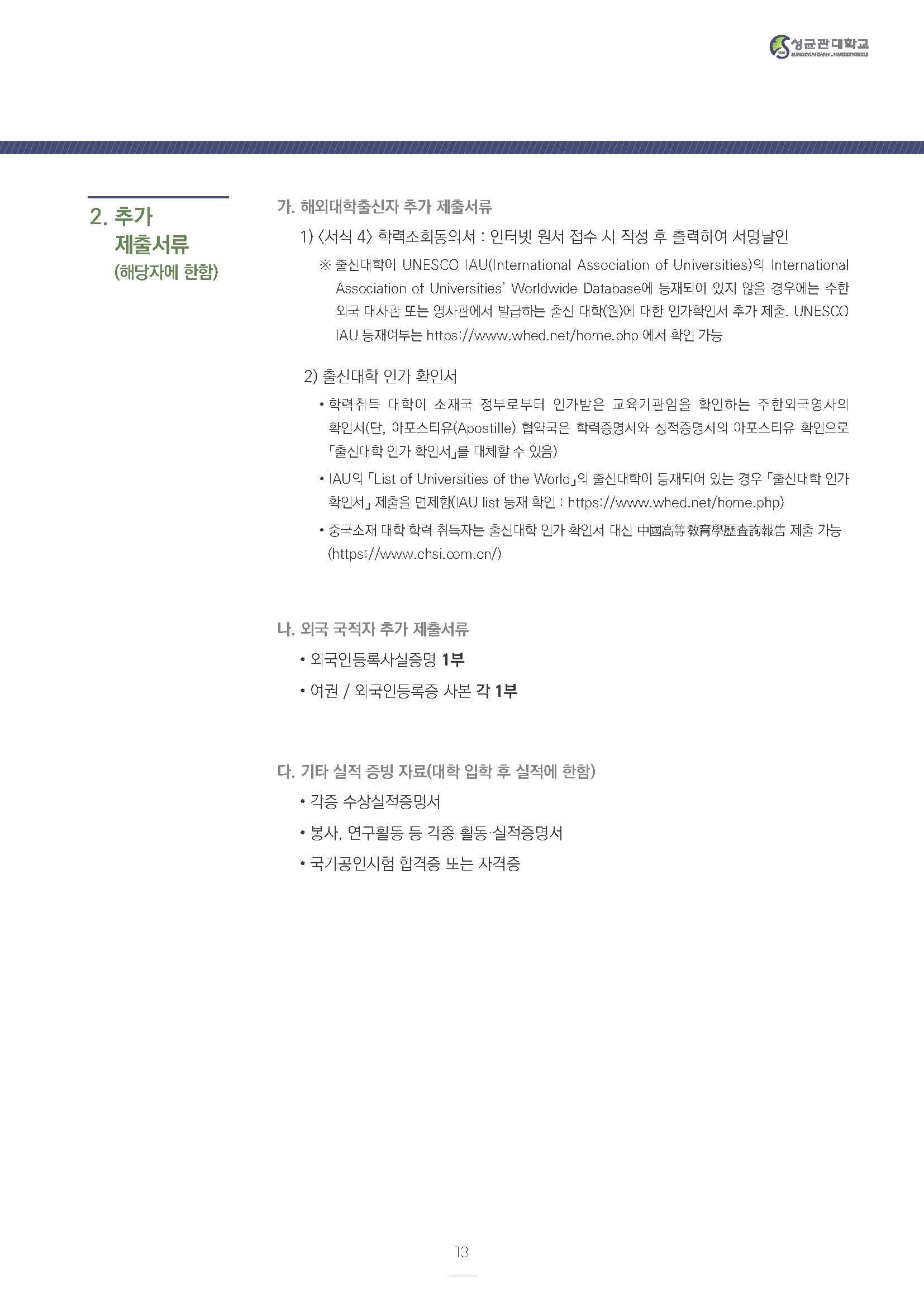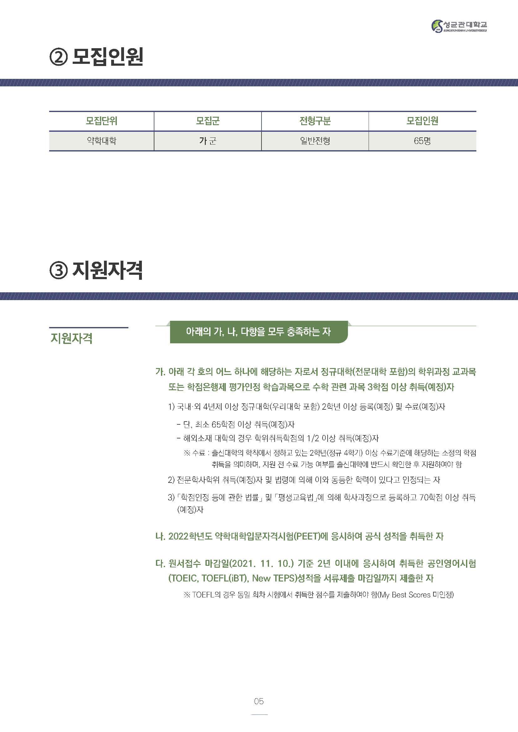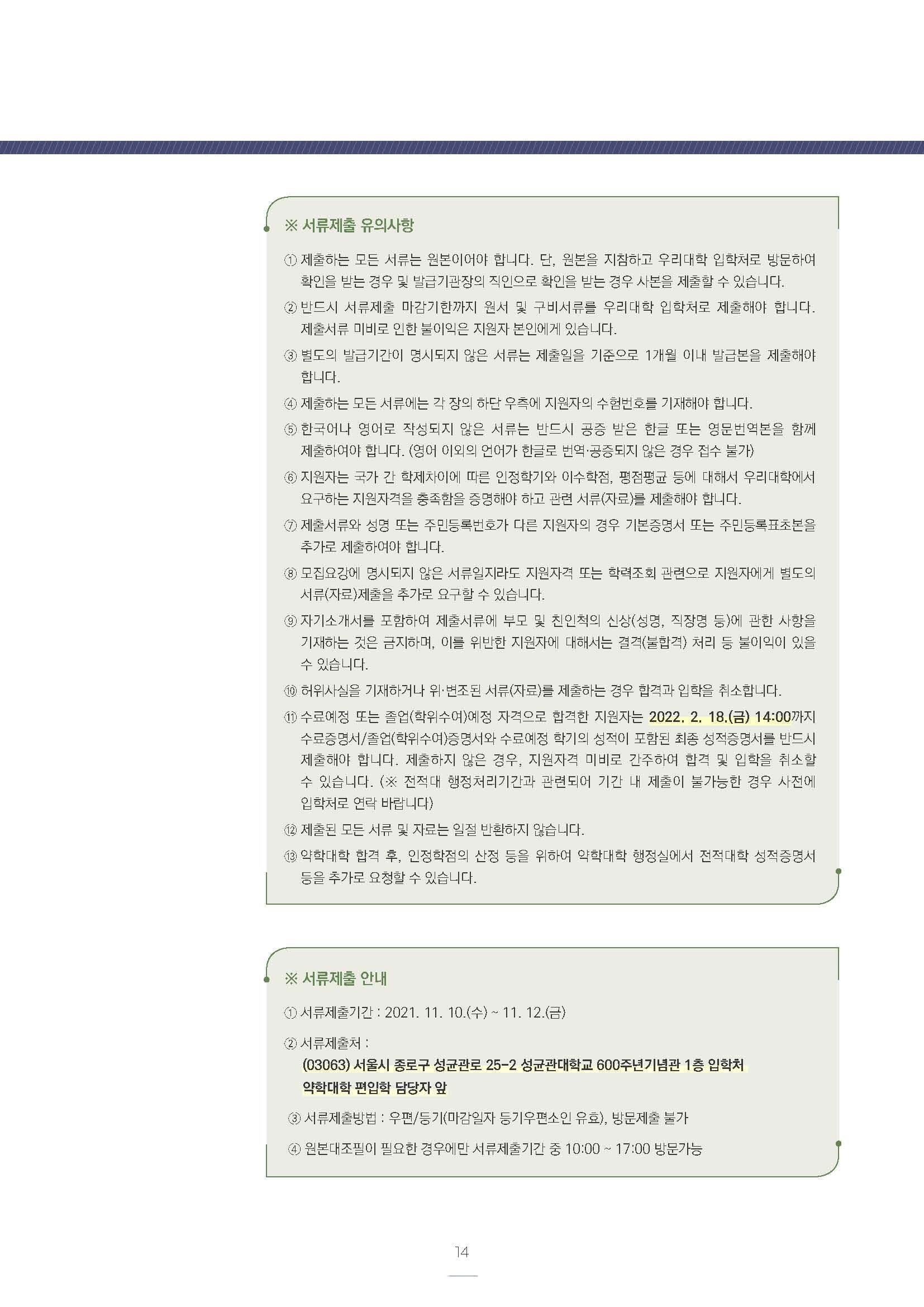 2022학년도 성균관대 약학대학 편입학 모집요강 작성자orpharm|작성시간21.08.07|조회수1,109 목록 댓글 0 글자크기 작게가 글자크기 크게가 2022학년도 성균관대학교 약학대학 편입학 모집요강.pdf6.20MB2022학년도 성균관대학교 약학대학 편입학 서식.hwp128.50KB 첨부파일첨부된 파일이 18개 있습니다. jpg 파일 2022학년도 성균관대학교 약학대학 편입학 모집요강_페이지_06.jpg 다운로드 jpg 파일 2022학년도 성균관대학교 약학대학 편입학 모집요강_페이지_07.jpg 다운로드 jpg 파일 2022학년도 성균관대학교 약학대학 편입학 모집요강_페이지_08.jpg 다운로드 jpg 파일 2022학년도 성균관대학교 약학대학 편입학 모집요강_페이지_09.jpg 다운로드 jpg 파일 2022학년도 성균관대학교 약학대학 편입학 모집요강_페이지_10.jpg 다운로드 jpg 파일 2022학년도 성균관대학교 약학대학 편입학 모집요강_페이지_01.jpg 다운로드 jpg 파일 2022학년도 성균관대학교 약학대학 편입학 모집요강_페이지_11.jpg 다운로드 jpg 파일 2022학년도 성균관대학교 약학대학 편입학 모집요강_페이지_12.jpg 다운로드 jpg 파일 2022학년도 성균관대학교 약학대학 편입학 모집요강_페이지_13.jpg 다운로드 jpg 파일 2022학년도 성균관대학교 약학대학 편입학 모집요강_페이지_14.jpg 다운로드 jpg 파일 2022학년도 성균관대학교 약학대학 편입학 모집요강_페이지_15.jpg 다운로드 jpg 파일 2022학년도 성균관대학교 약학대학 편입학 모집요강_페이지_16.jpg 다운로드 jpg 파일 2022학년도 성균관대학교 약학대학 편입학 모집요강_페이지_17.jpg 다운로드 jpg 파일 2022학년도 성균관대학교 약학대학 편입학 모집요강_페이지_18.jpg 다운로드 jpg 파일 2022학년도 성균관대학교 약학대학 편입학 모집요강_페이지_19.jpg 다운로드 jpg 파일 2022학년도 성균관대학교 약학대학 편입학 모집요강_페이지_20.jpg 다운로드 hwp 파일 2022학년도 성균관대학교 약학대학 편입학 서식.hwp 다운로드 pdf 파일 2022학년도 성균관대학교 약학대학 편입학 모집요강.pdf 다운로드 다음검색 현재 게시글 추가 기능 열기 북마크 공유하기 신고 센터로 신고 댓글 댓글 0 댓글쓰기 답글쓰기 댓글 리스트
