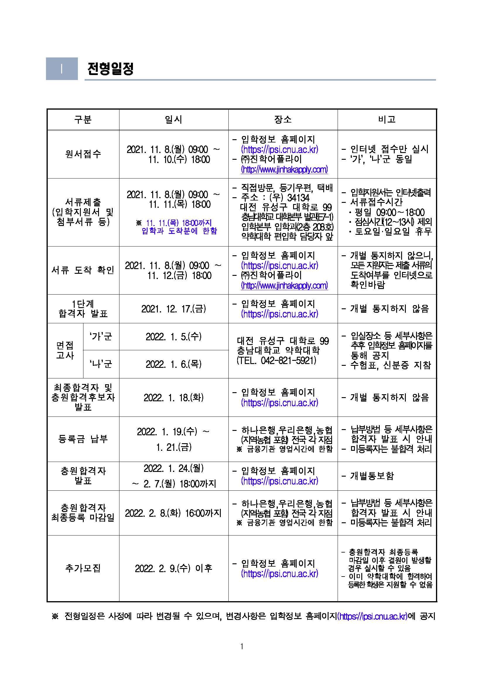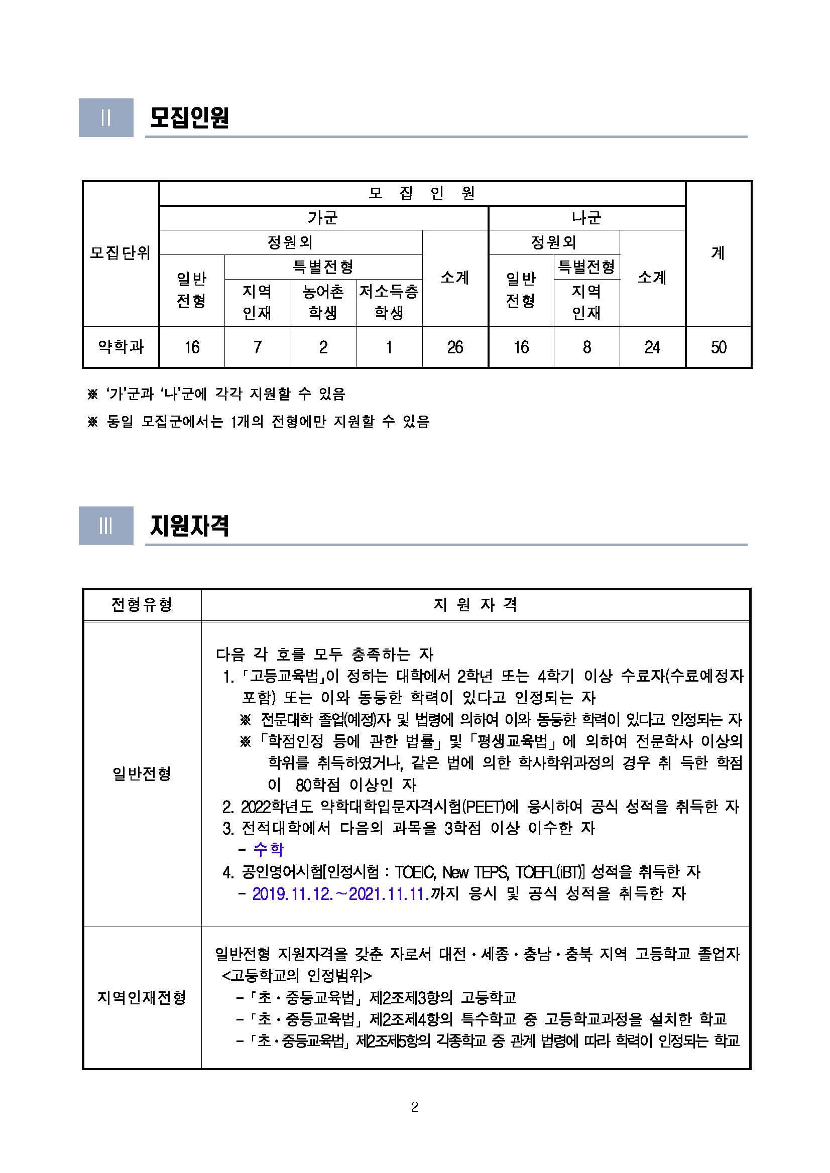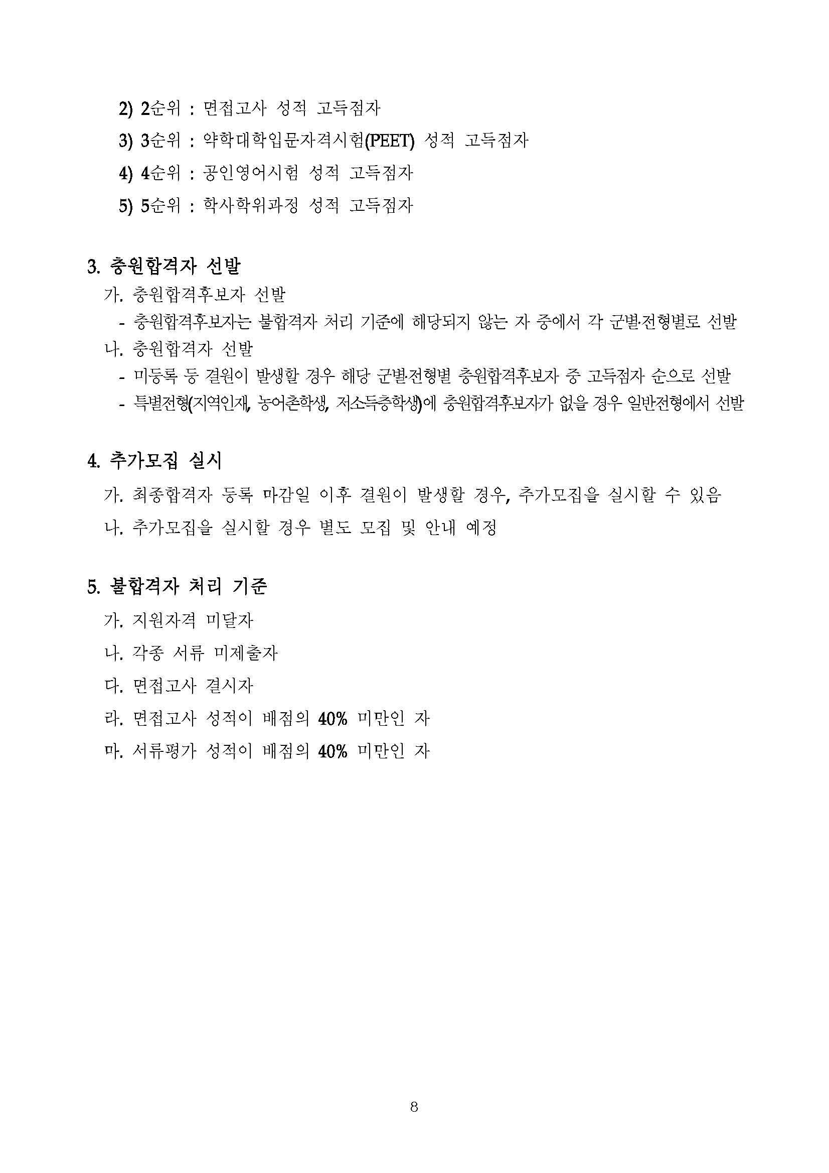 2022학년도 충남대 약학대학 편입학 모집요강 작성자™Dragon|작성시간21.09.03|조회수1,509 목록 댓글 0 글자크기 작게가 글자크기 크게가 2022학년도 약학대학 편입학 전형 모집요강(확정).pdf762.82KB 첨부파일첨부된 파일이 10개 있습니다. jpg 파일 2022학년도 약학대학 편입학 전형 모집요강(확정)_페이지_01.jpg 다운로드 jpg 파일 2022학년도 약학대학 편입학 전형 모집요강(확정)_페이지_04.jpg 다운로드 jpg 파일 2022학년도 약학대학 편입학 전형 모집요강(확정)_페이지_03.jpg 다운로드 jpg 파일 2022학년도 약학대학 편입학 전형 모집요강(확정)_페이지_06.jpg 다운로드 jpg 파일 2022학년도 약학대학 편입학 전형 모집요강(확정)_페이지_07.jpg 다운로드 jpg 파일 2022학년도 약학대학 편입학 전형 모집요강(확정)_페이지_10.jpg 다운로드 jpg 파일 2022학년도 약학대학 편입학 전형 모집요강(확정)_페이지_09.jpg 다운로드 jpg 파일 2022학년도 약학대학 편입학 전형 모집요강(확정)_페이지_05.jpg 다운로드 jpg 파일 2022학년도 약학대학 편입학 전형 모집요강(확정)_페이지_08.jpg 다운로드 pdf 파일 2022학년도 약학대학 편입학 전형 모집요강(확정).pdf 다운로드 다음검색 현재 게시글 추가 기능 열기 북마크 공유하기 신고 센터로 신고 댓글 댓글 0 댓글쓰기 답글쓰기 댓글 리스트