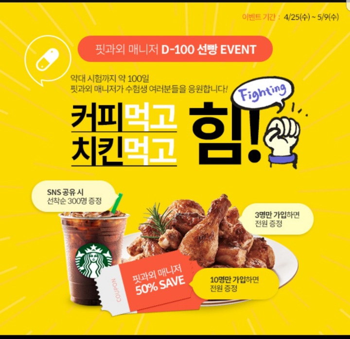 D-100일 이벤트중이네요 작성자준회1|작성시간18.04.25|조회수59 목록 댓글 0 글자크기 작게가 글자크기 크게가 커피 치킨 받으러! 다음검색 현재 게시글 추가 기능 열기 북마크 공유하기 신고 센터로 신고 댓글 댓글 0 댓글쓰기 답글쓰기 댓글 리스트