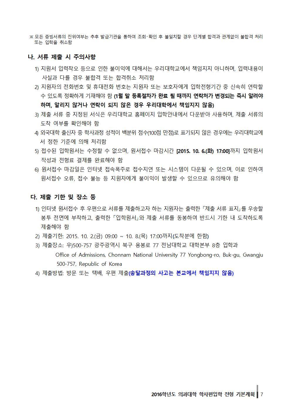 2016 전남대 의대 학사편입 모집요강 작성자플팜.|작성시간15.04.02|조회수137 목록 댓글 0 글자크기 작게가 글자크기 크게가 2016학년도 의과대학 학사편입학 기본계획.hwp 첨부파일첨부된 파일이 8개 있습니다. jpg 파일 image001.jpg 다운로드 jpg 파일 image002.jpg 다운로드 jpg 파일 image003.jpg 다운로드 jpg 파일 image004.jpg 다운로드 jpg 파일 image005.jpg 다운로드 jpg 파일 image006.jpg 다운로드 jpg 파일 image007.jpg 다운로드 hwp 파일 2016학년도 의과대학 학사편입학 기본계획.hwp 다운로드 다음검색 현재 게시글 추가 기능 열기 북마크 공유하기 신고 센터로 신고 댓글 댓글 0 댓글쓰기 답글쓰기 댓글 리스트