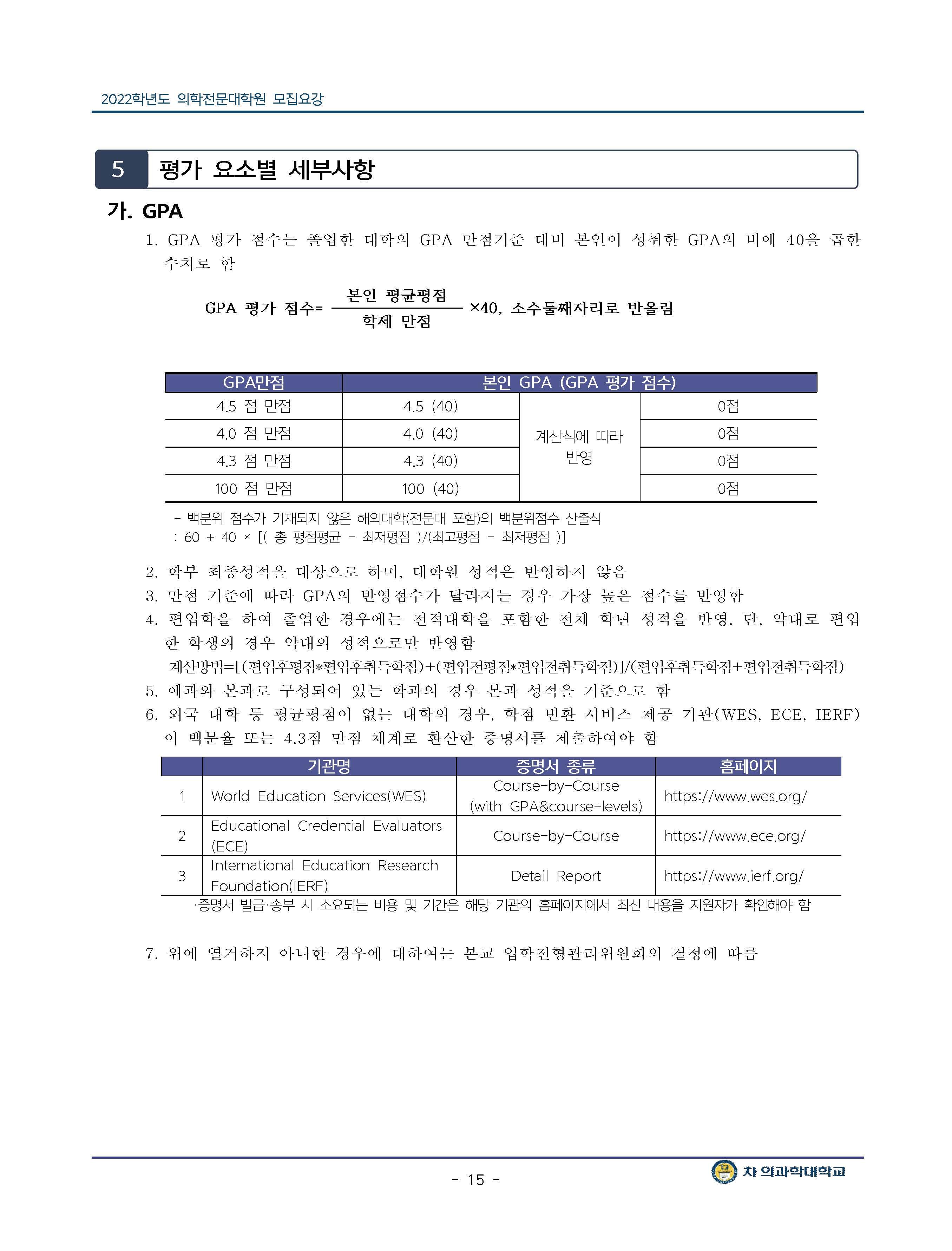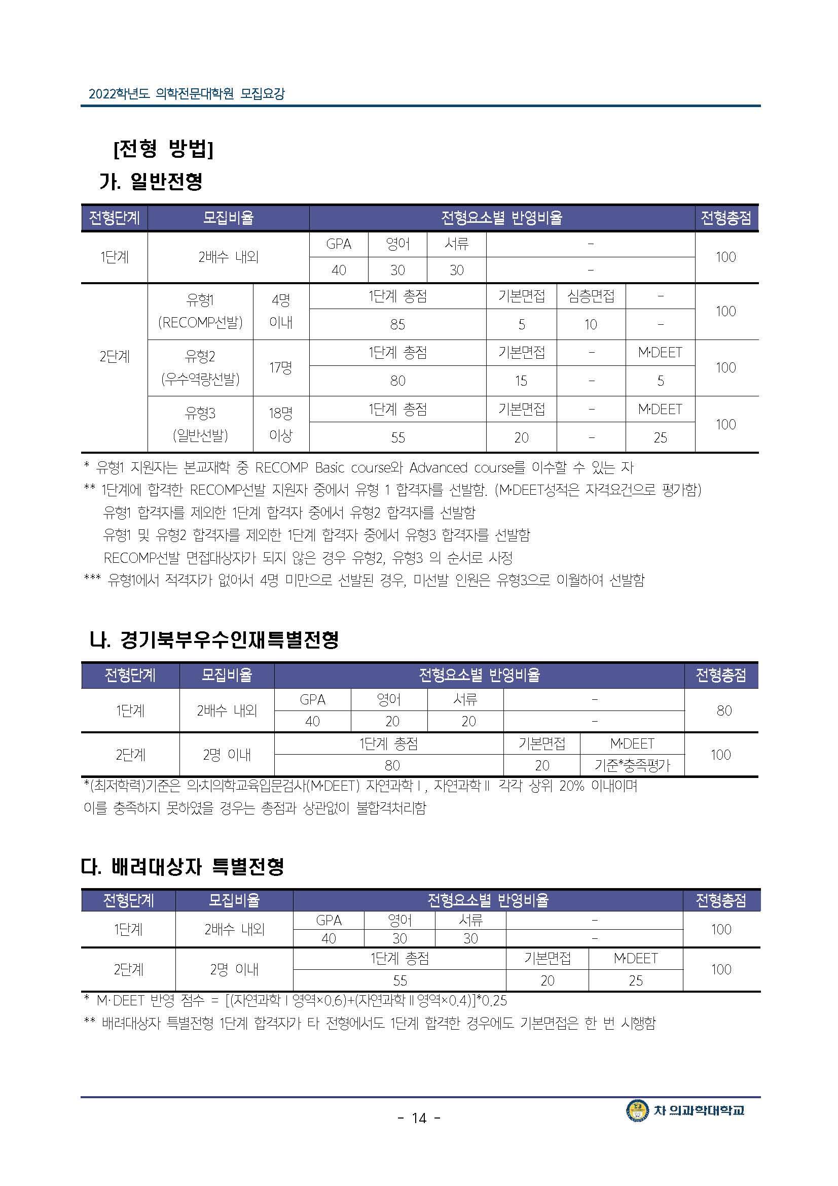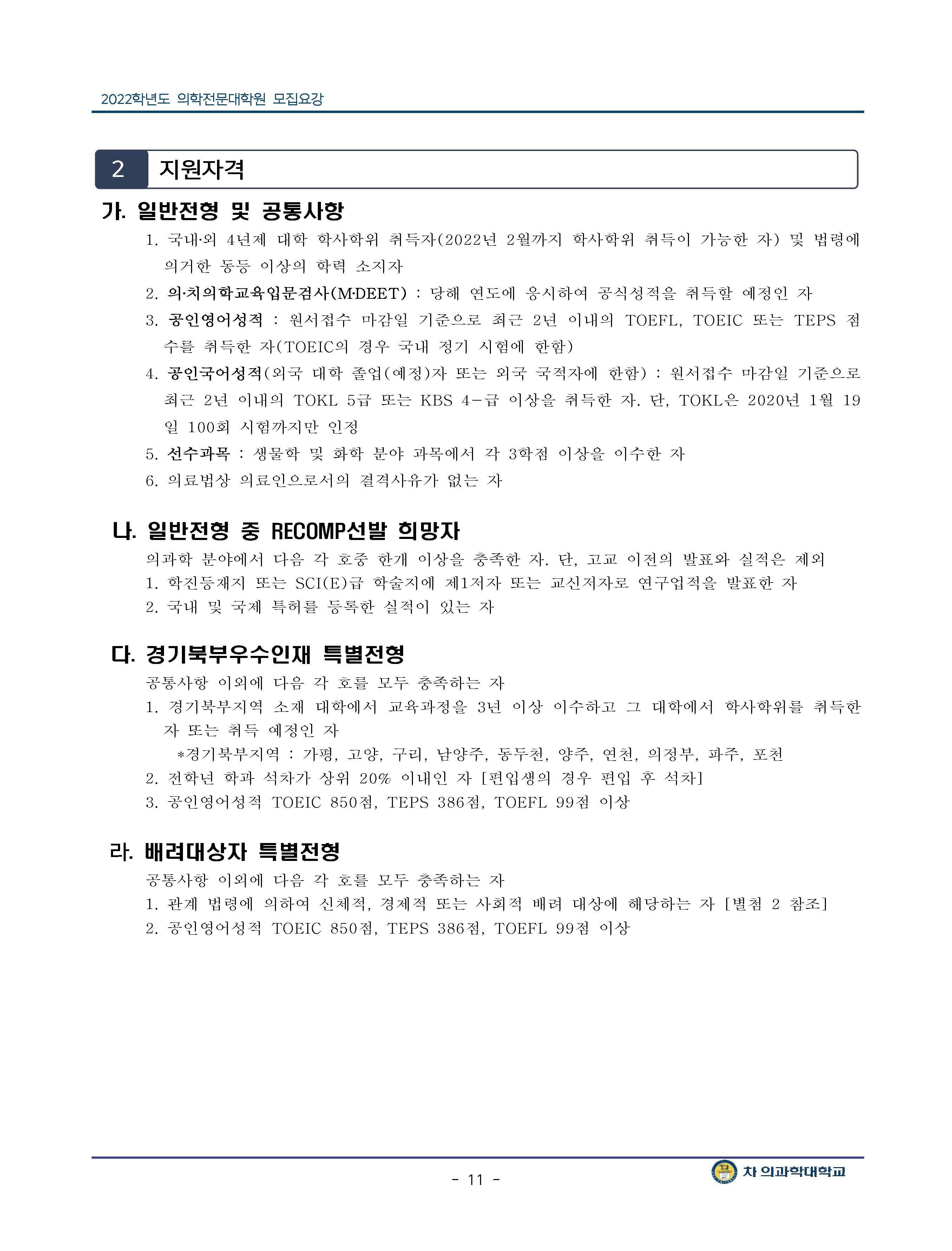 2022학년도 차의과학대학교 의학전문대학원 모집요강 작성자cajin|작성시간21.05.26|조회수2,359 목록 댓글 0 글자크기 작게가 글자크기 크게가 10040_2021052527_01.pdf5.87MB 첨부파일첨부된 파일이 9개 있습니다. jpg 파일 10040_2021052527_01_페이지_13.jpg 다운로드 jpg 파일 10040_2021052527_01_페이지_14.jpg 다운로드 jpg 파일 10040_2021052527_01_페이지_15.jpg 다운로드 jpg 파일 10040_2021052527_01_페이지_11.jpg 다운로드 jpg 파일 10040_2021052527_01_페이지_08.jpg 다운로드 jpg 파일 10040_2021052527_01_페이지_12.jpg 다운로드 jpg 파일 10040_2021052527_01_페이지_09.jpg 다운로드 jpg 파일 10040_2021052527_01_페이지_10.jpg 다운로드 pdf 파일 10040_2021052527_01.pdf 다운로드 다음검색 현재 게시글 추가 기능 열기 북마크 공유하기 신고 센터로 신고 댓글 댓글 0 댓글쓰기 답글쓰기 댓글 리스트