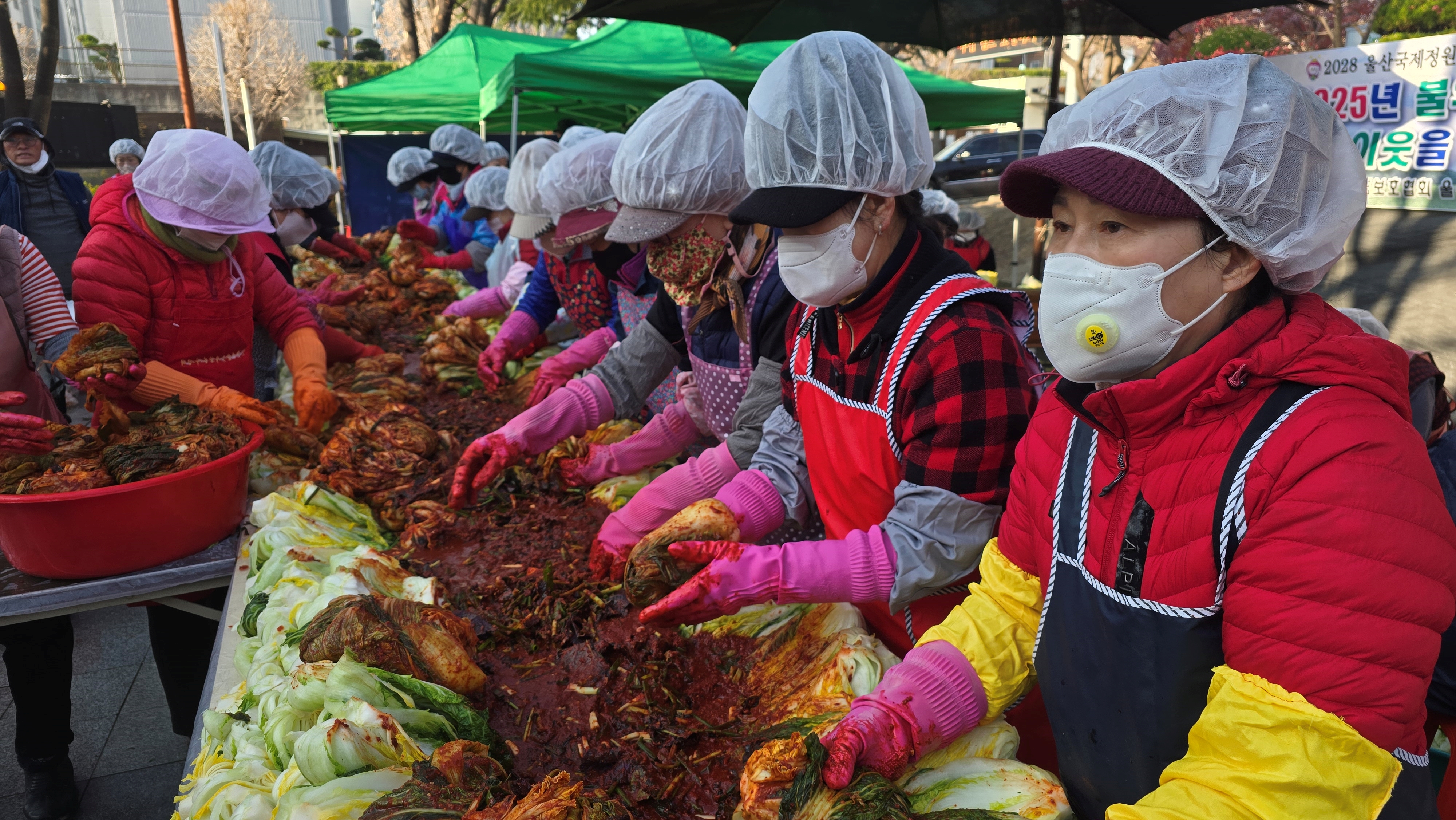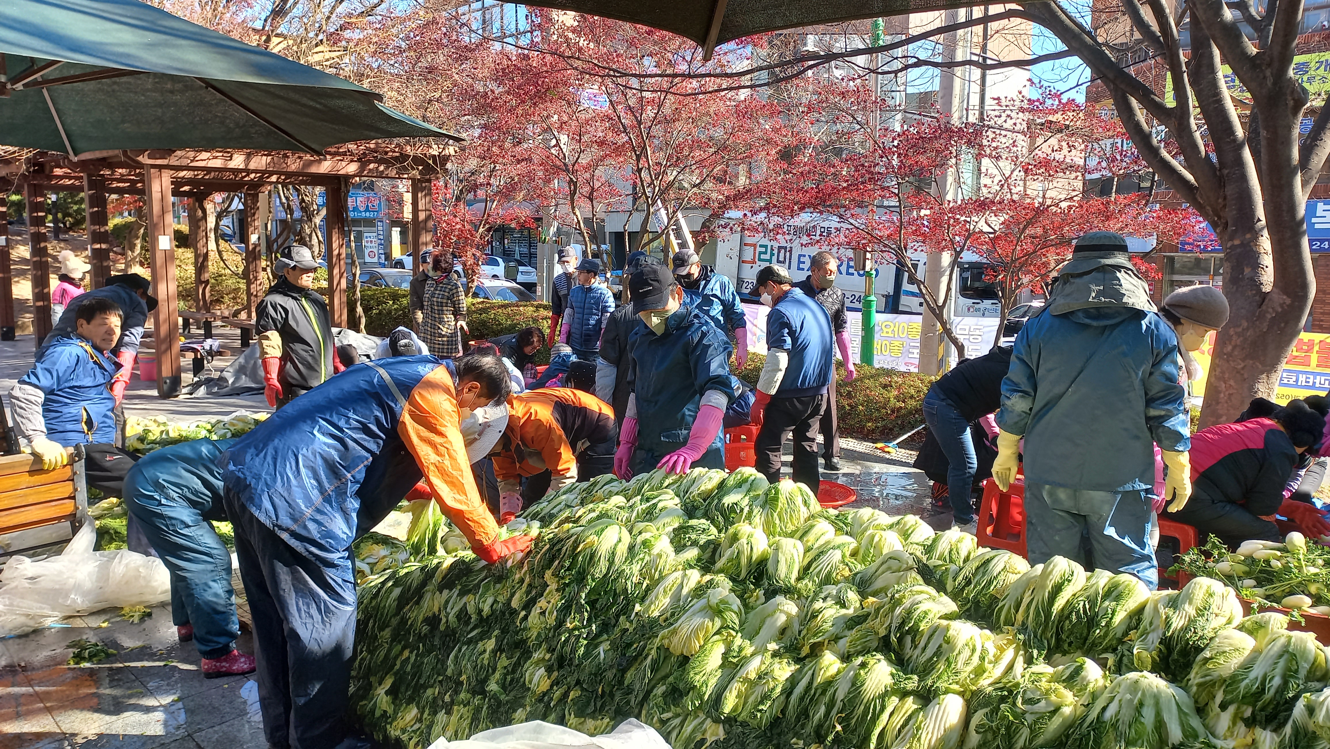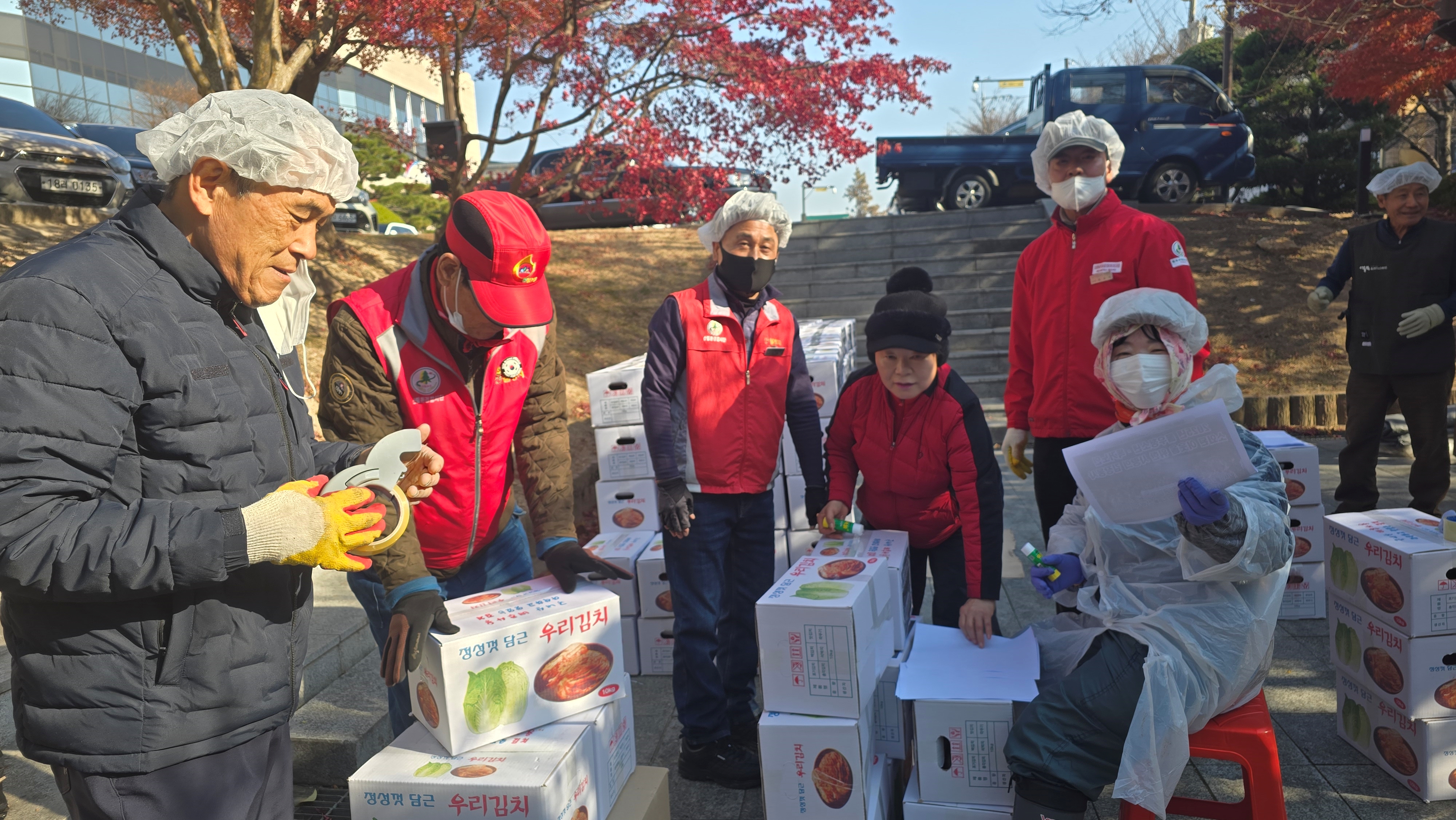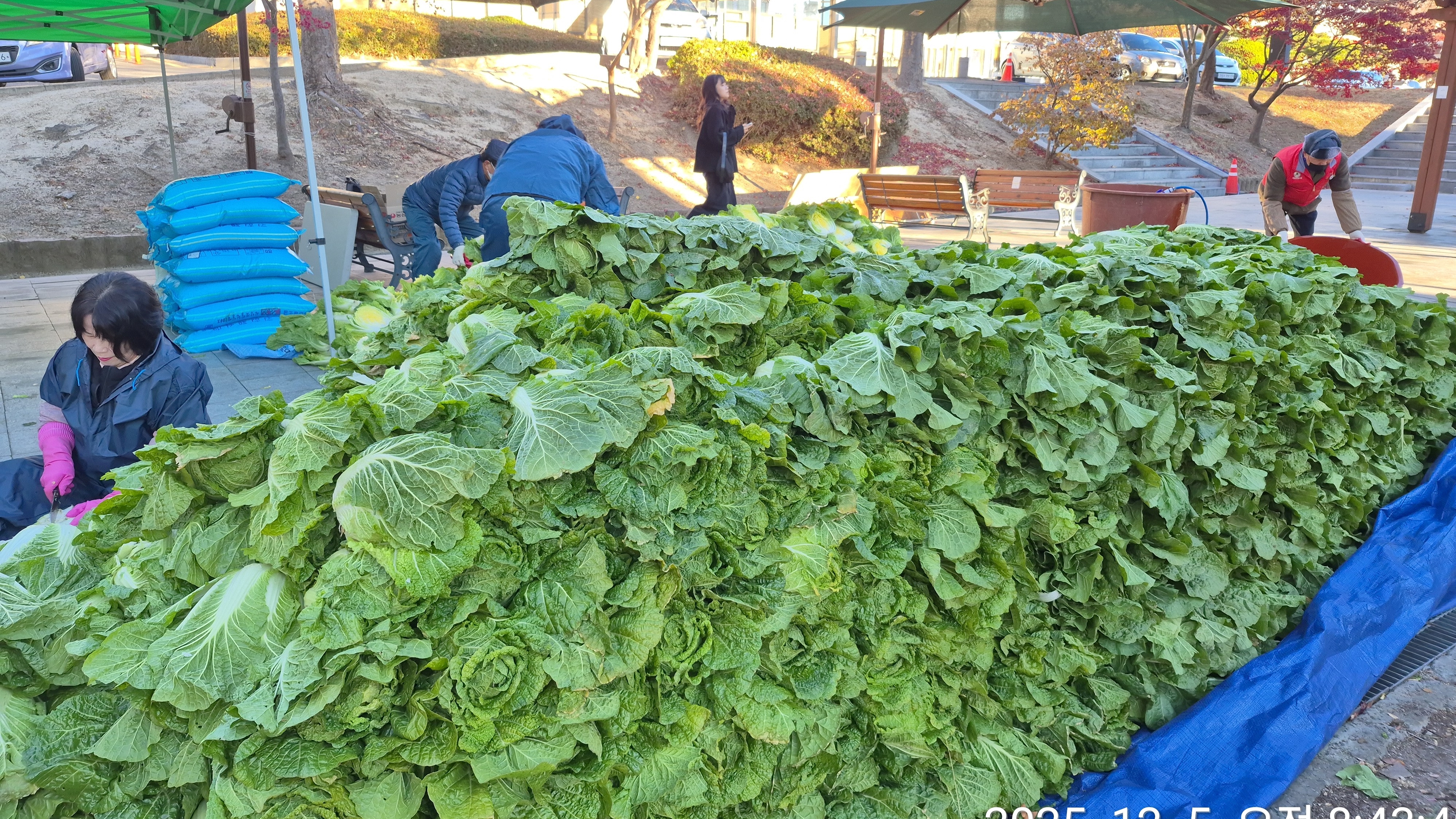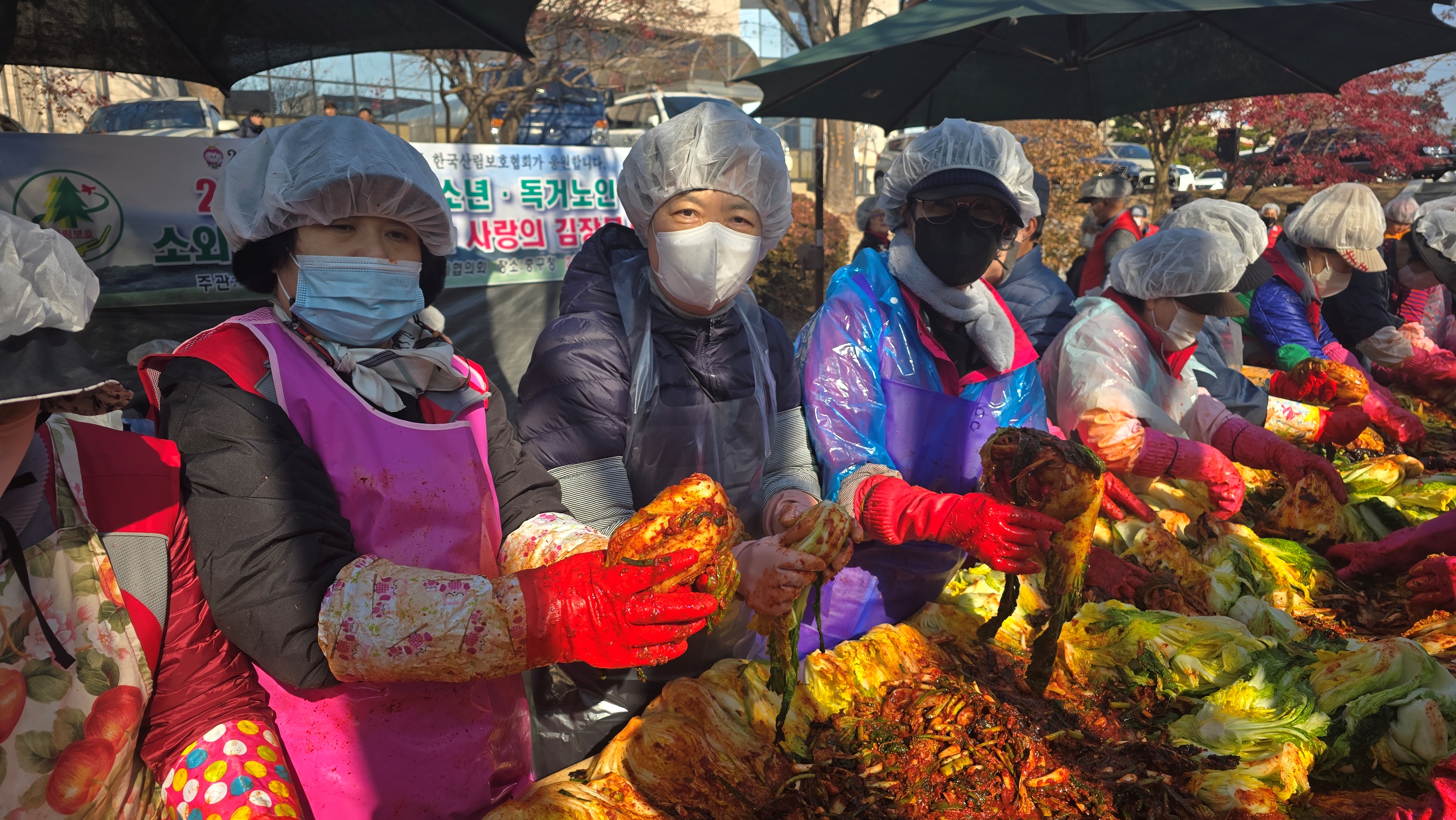 (사)한국산림보호협회 울산협의회 제6회 2025년 사랑의 김장담기 봉사활동으로 김철호 회장외 총 200여명은 12월 4일(목)~7일(일) 4일간 울산시 중구청 소공원내 광장에서 중구청의 수도등 시설 이용 지원을 받아 산보협 봉사농원 수확 배추 4,000포기, 무우 30포대로 500박스 김장을 담았다