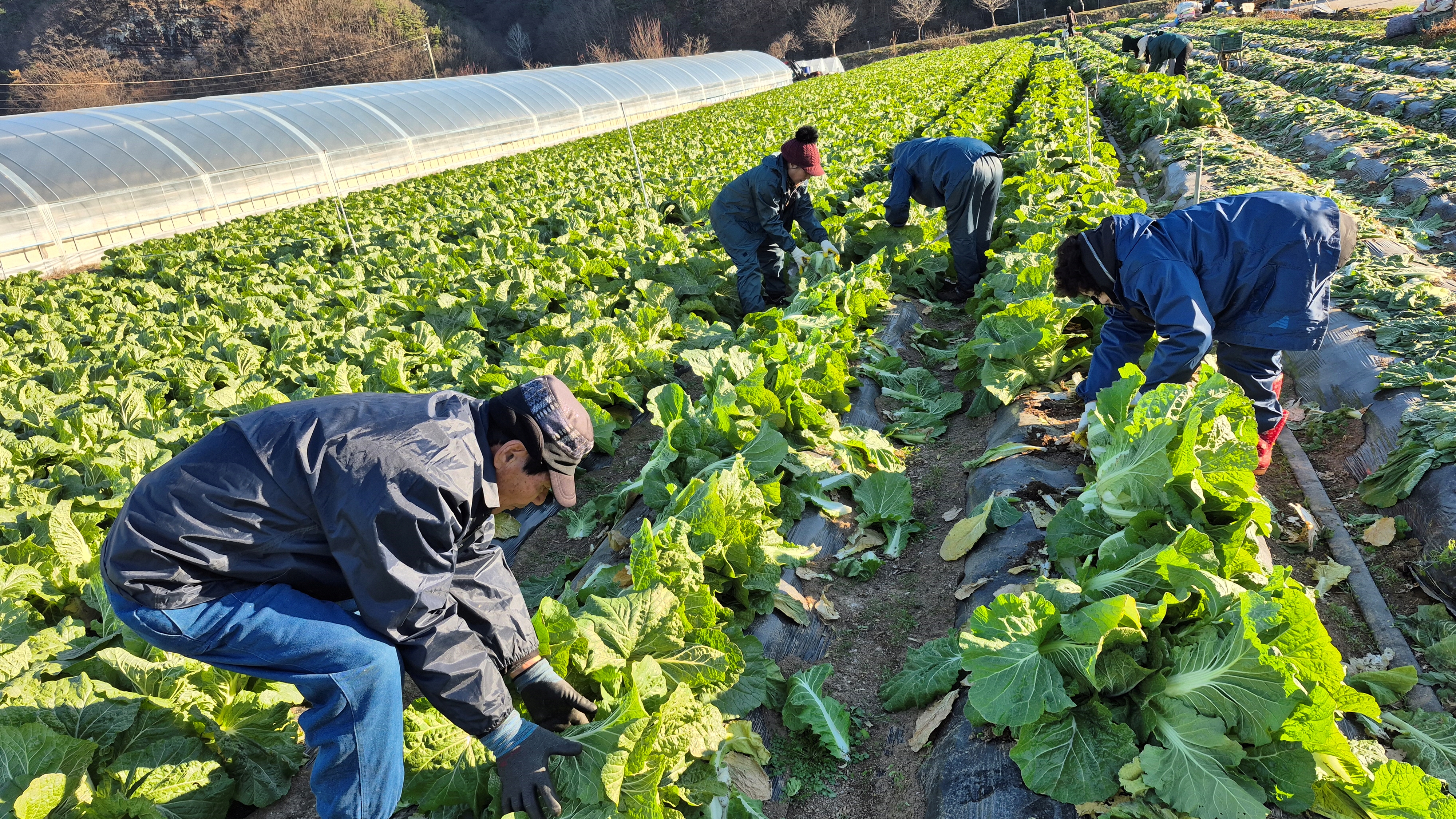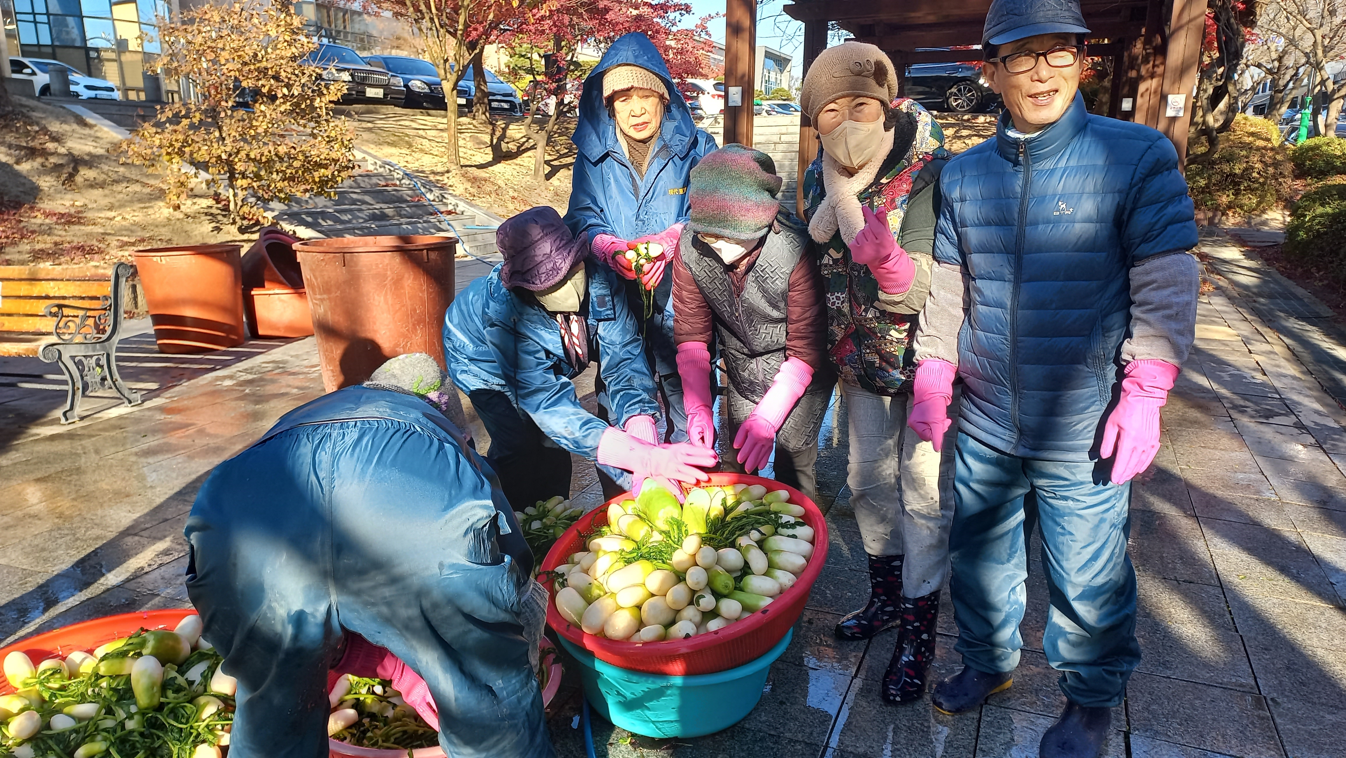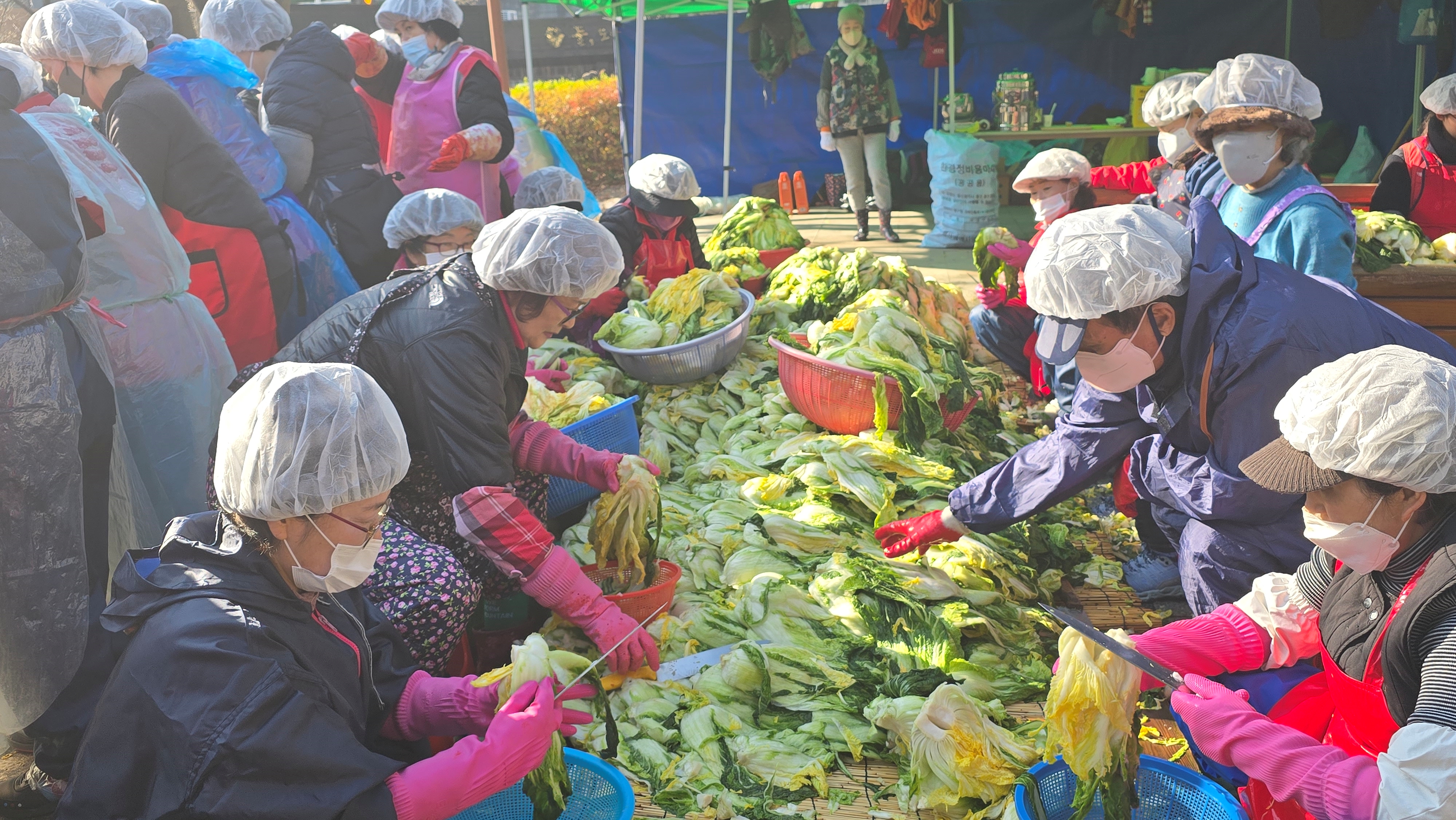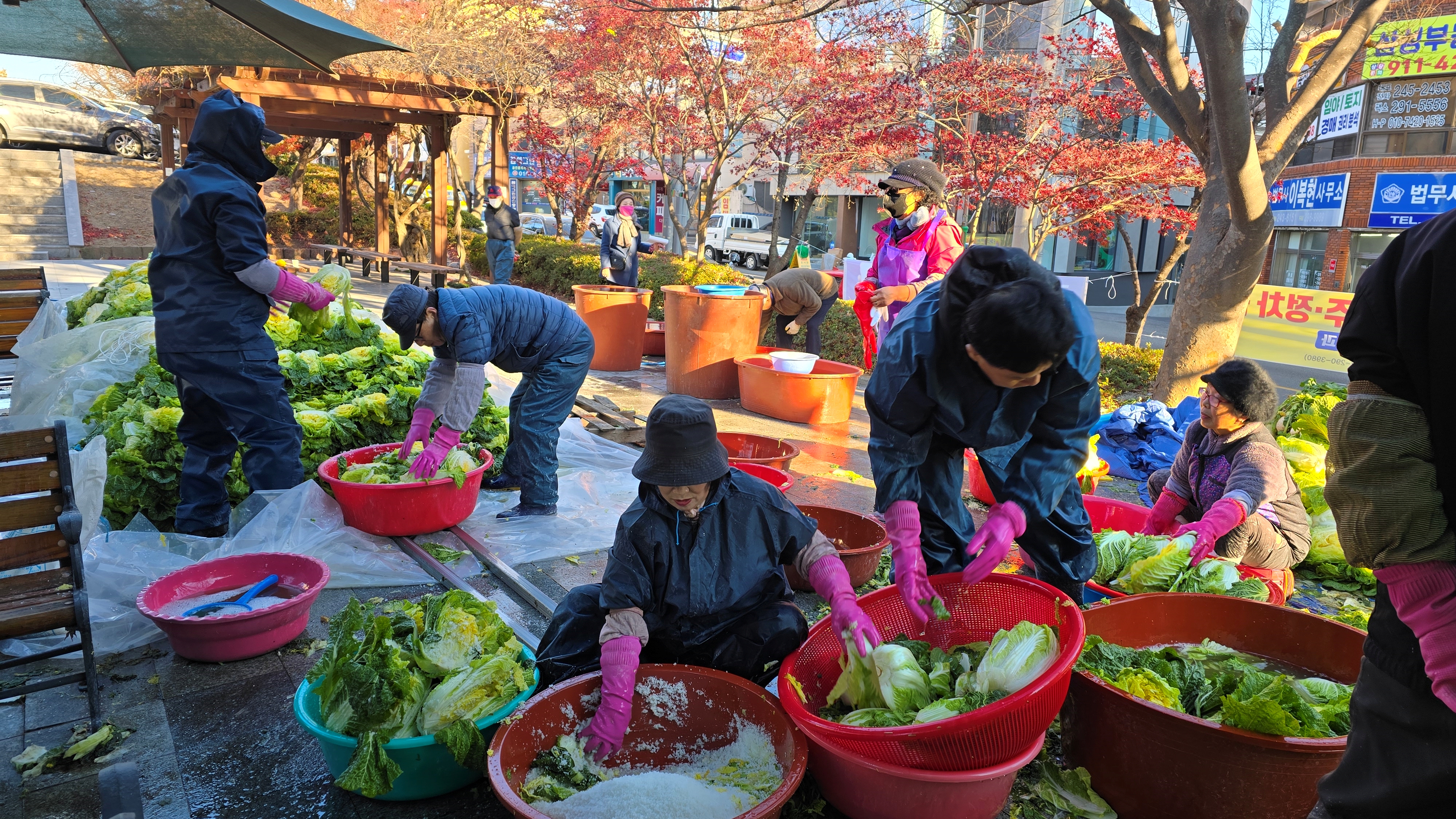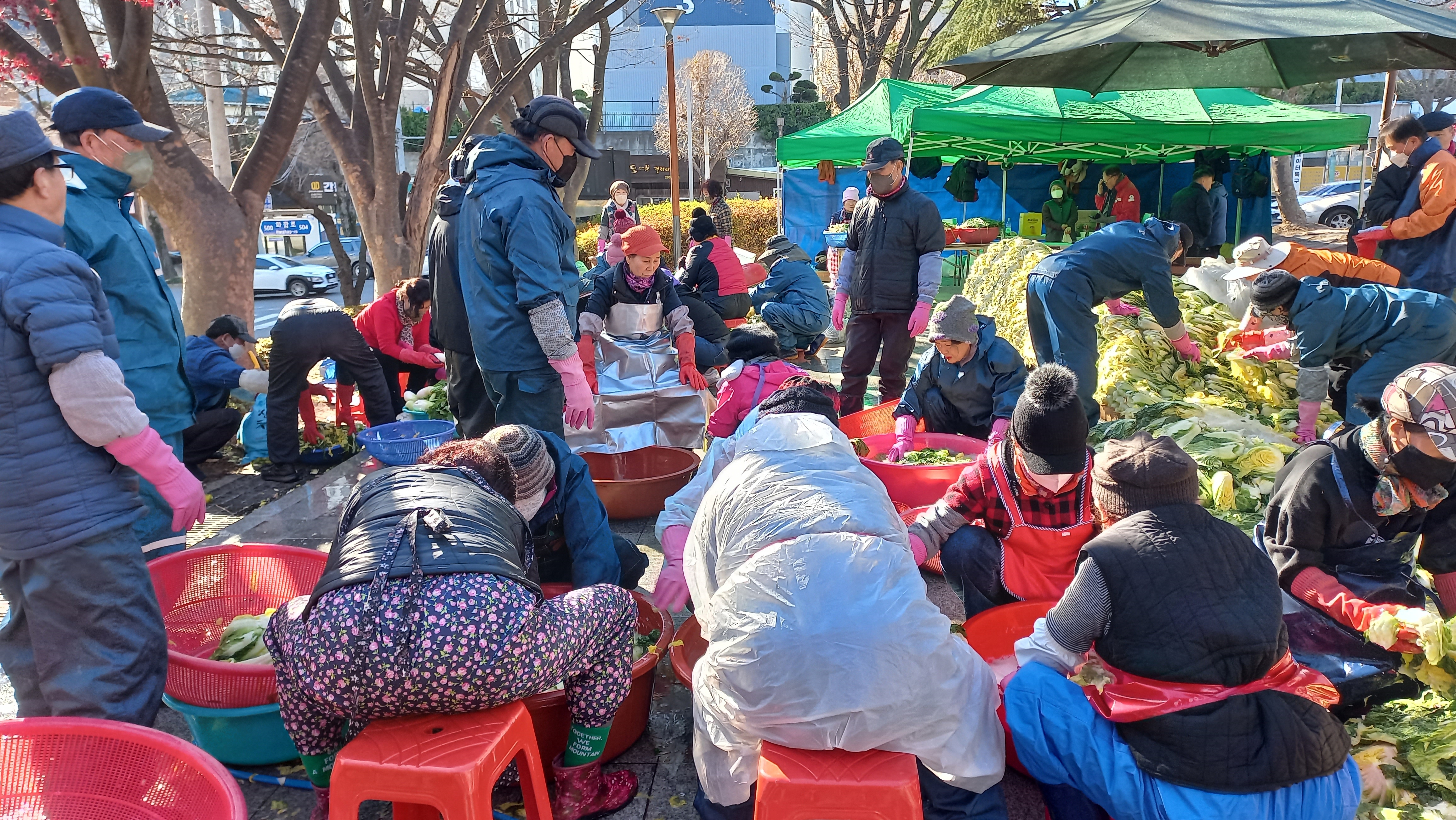 (사)한국산림보호협회 울산협의회 제6회 2025년 사랑의 김장담기 봉사활동으로 김철호 회장외 총 200여명은 12월 4일(목)~7일(일) 4일간 울산시 중구청 소공원내 광장에서 중구청의 수도등 시설 이용 지원을 받아 산보협 봉사농원 수확 배추 4,000포기, 무우 30포대로 500박스 김장을 담았다