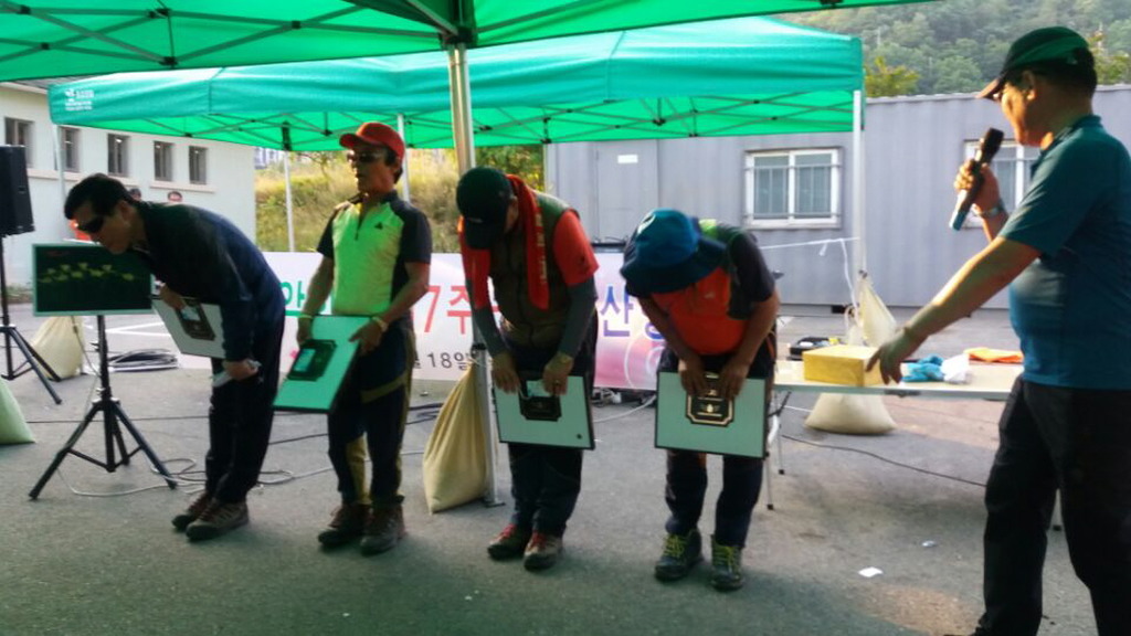 7주년 기념 우수 산악회회원 표창하고 푸짐한 먹거리와