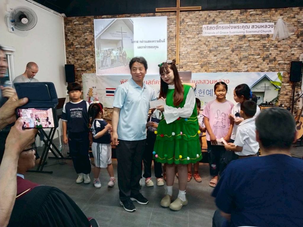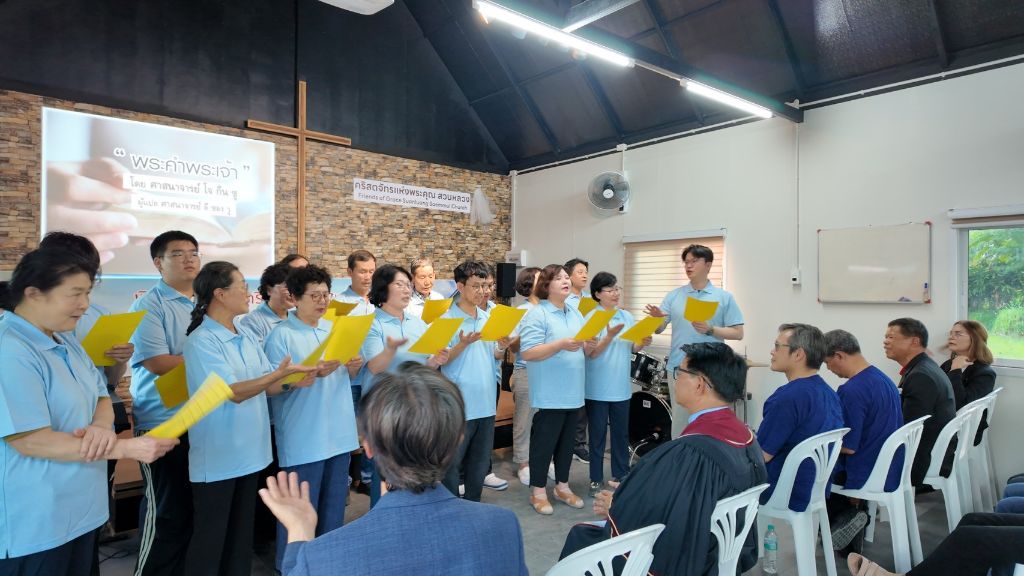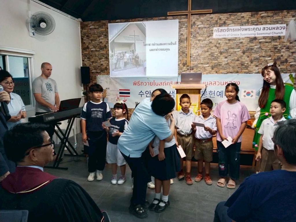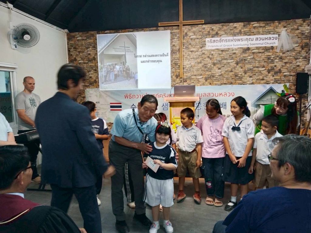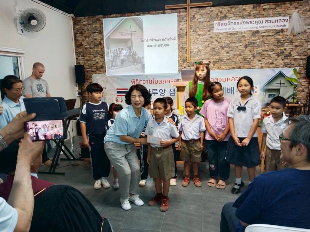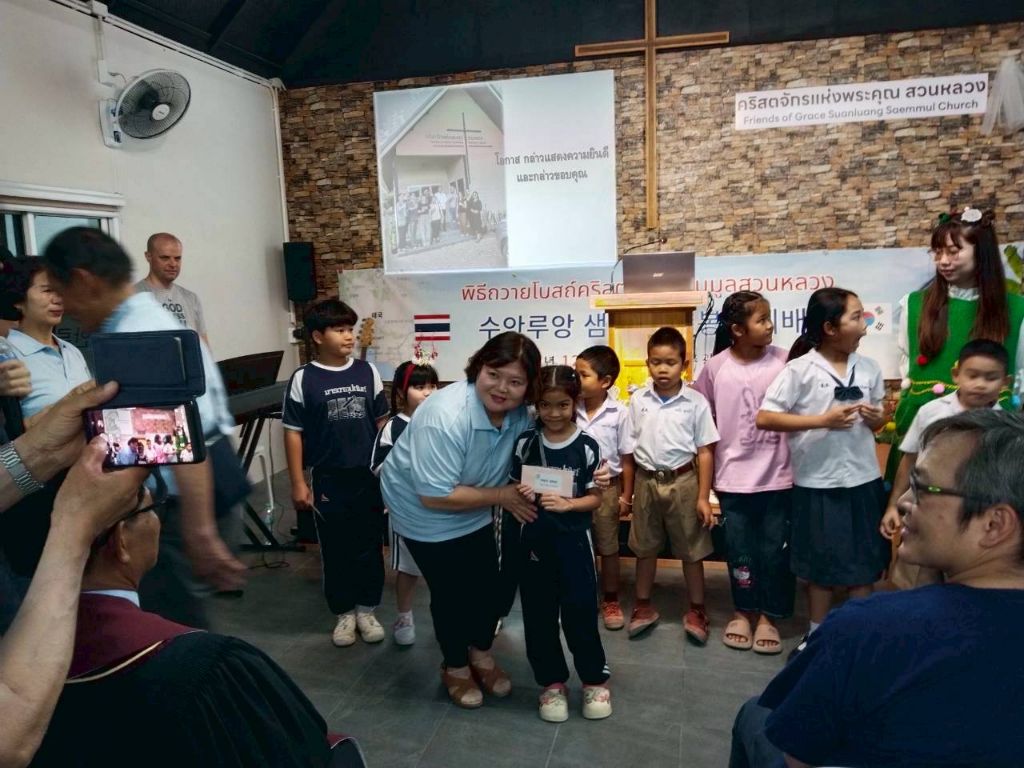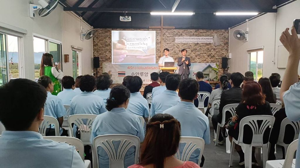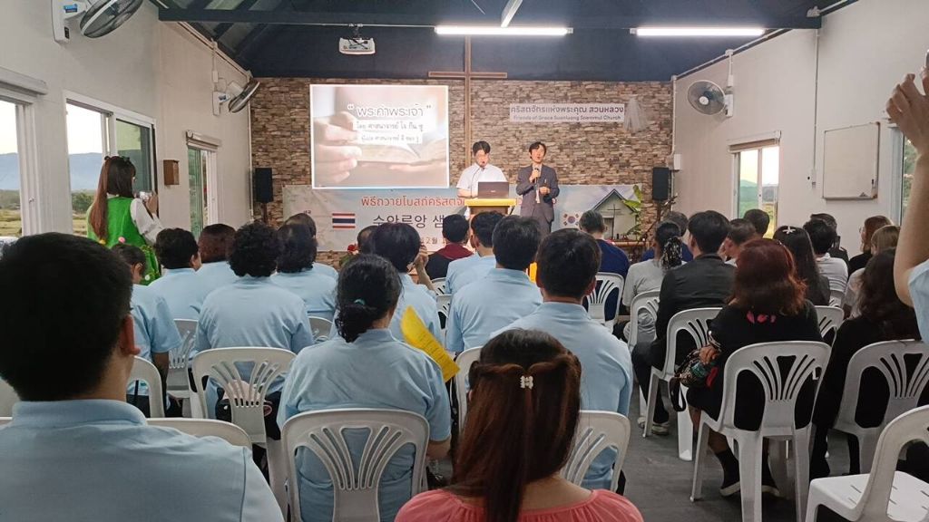 -봉고차와 자가용으로(5000) 프래 행프라쿤 교회 방문