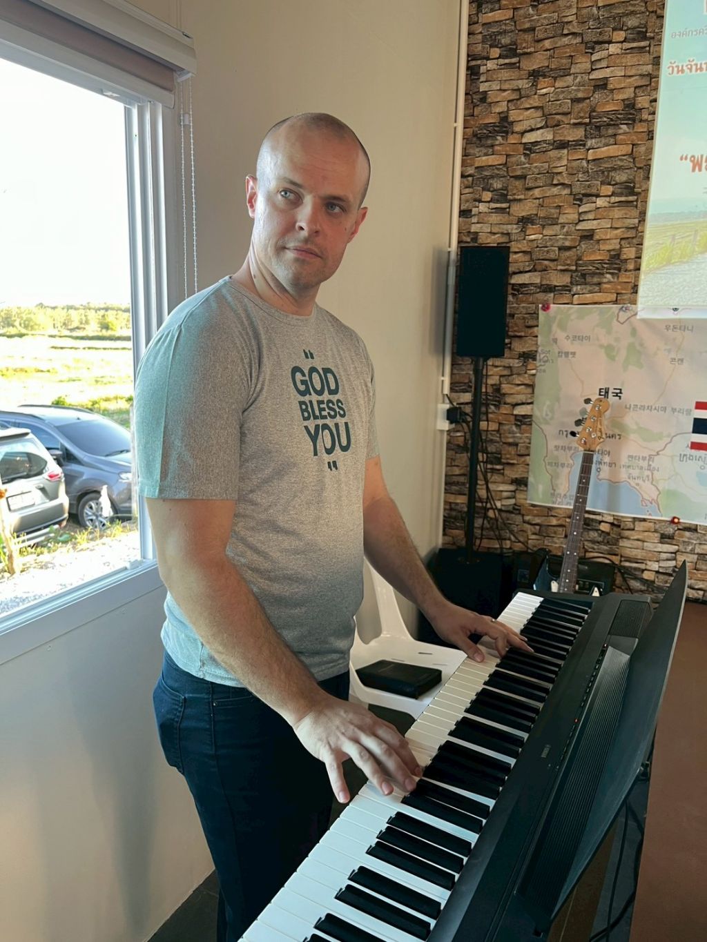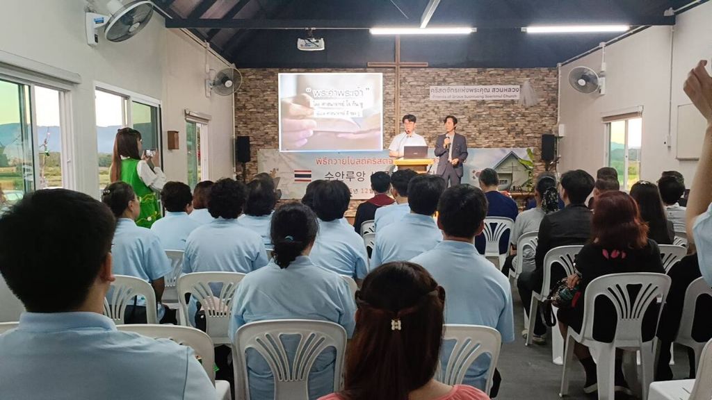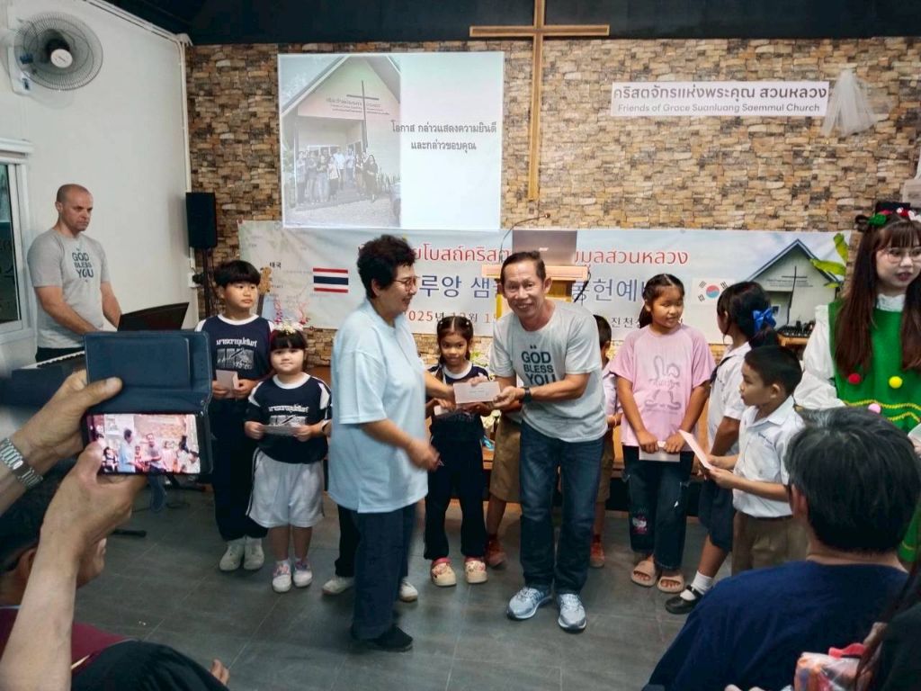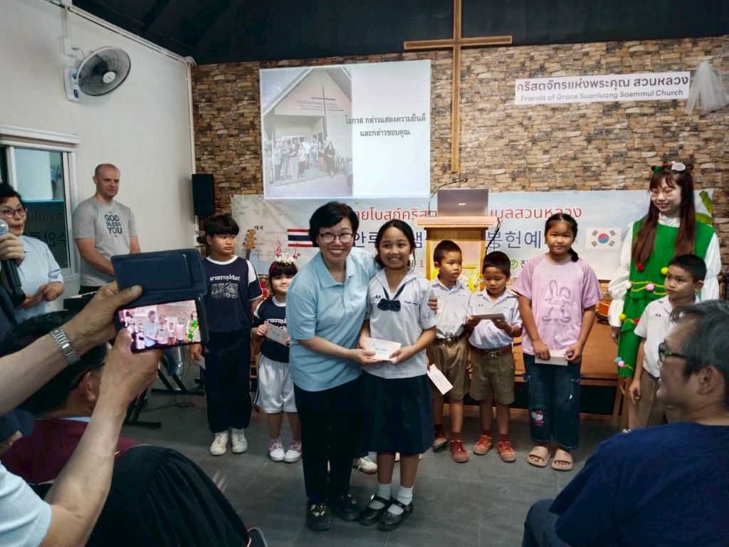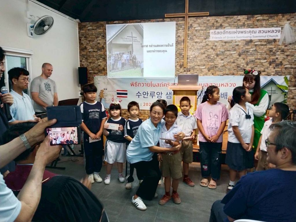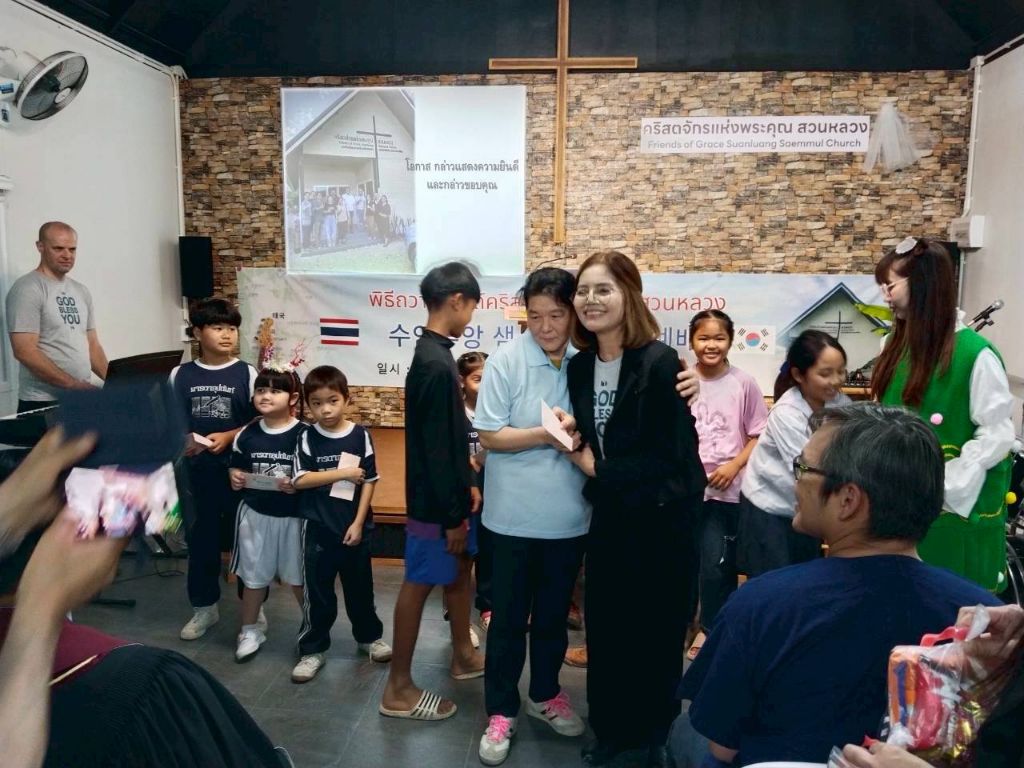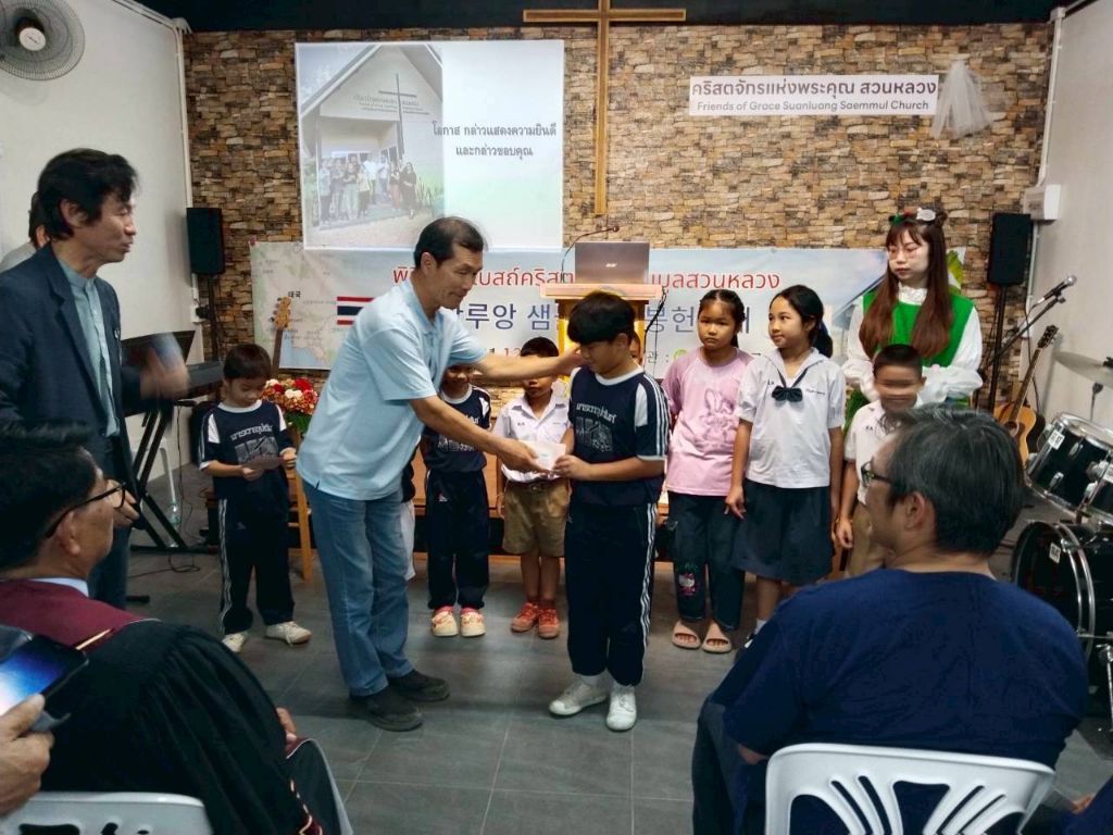 -봉고차와 자가용으로(5000) 프래 행프라쿤 교회 방문