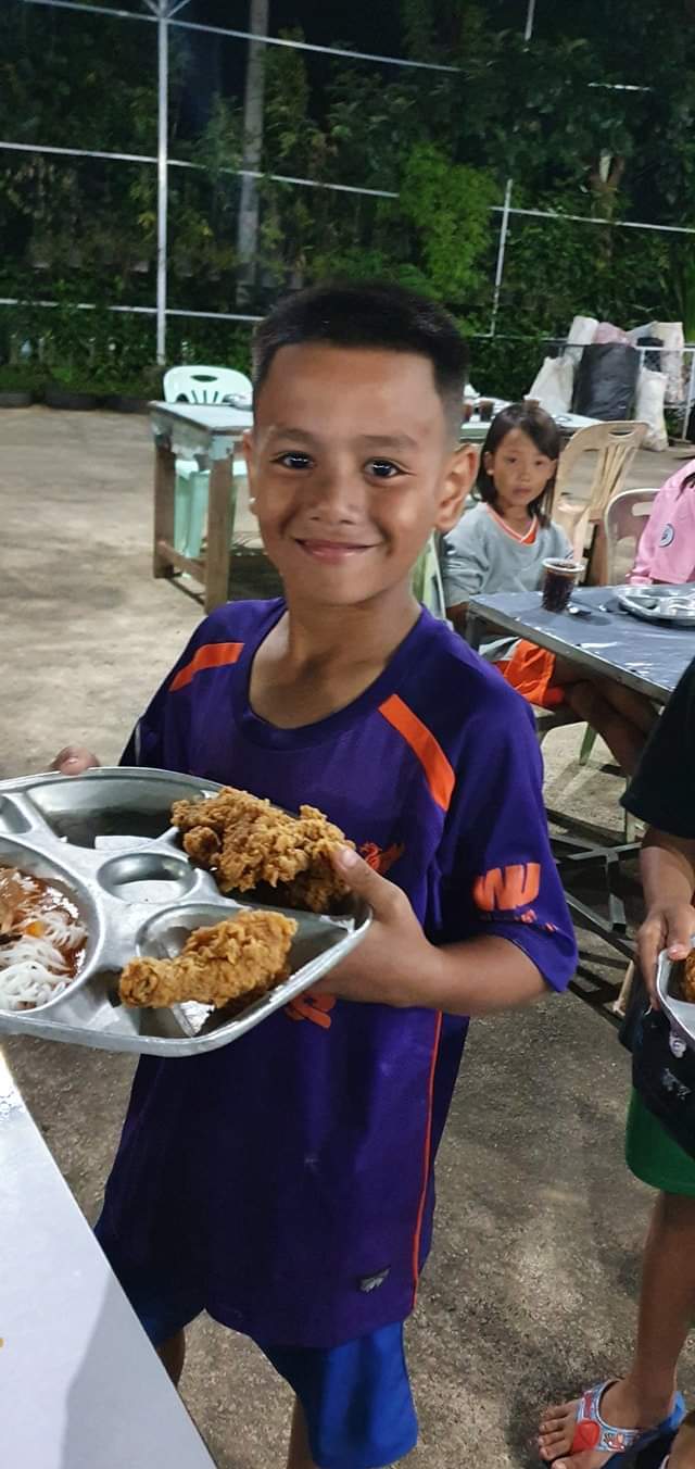 매짠 어린이 44명, 어른 포함 약 50명에게 kfc를 대접해 드렸다.