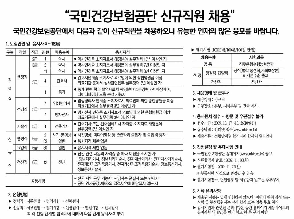 국민건강보험공단 신규직원 채용 안내(2009년 하반기) 작성자여시|작성시간09.10.13|조회수41 목록 댓글 0 글자크기 작게가 글자크기 크게가 다음검색 현재 게시글 추가 기능 열기 북마크 공유하기 신고 센터로 신고 댓글 댓글 0 댓글쓰기 답글쓰기 댓글 리스트