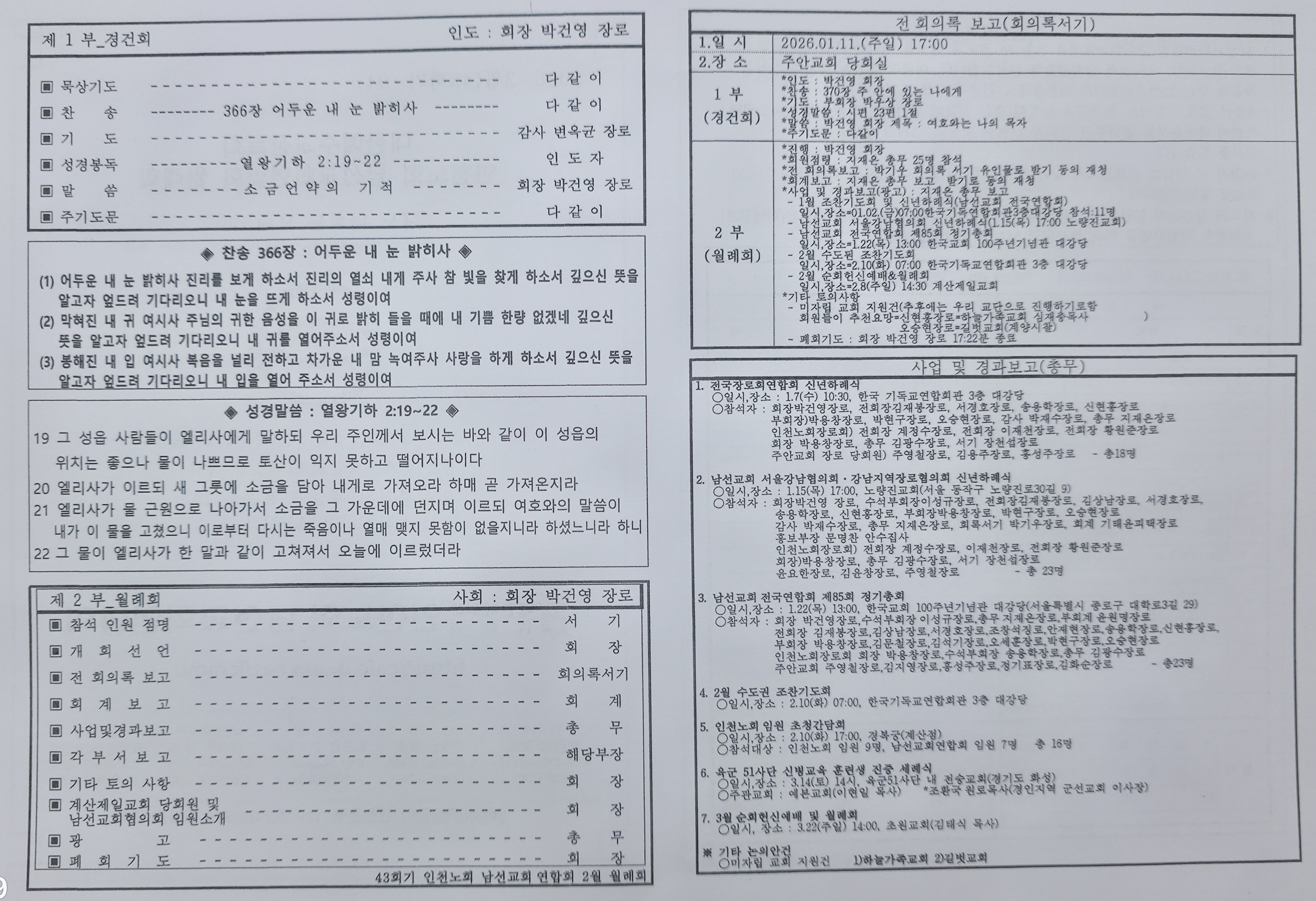 < 인천노회 남선교회연합회 2026-2월 월례회 : 본당 > 오후 3시40분 - 4시 30분