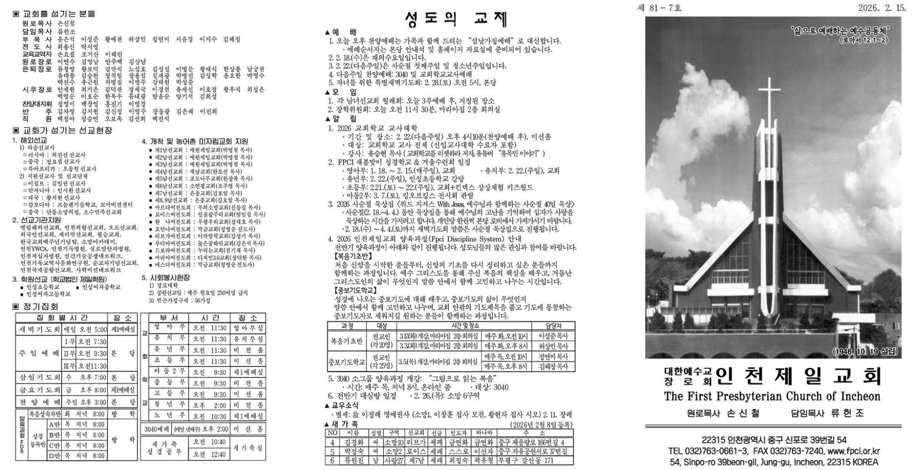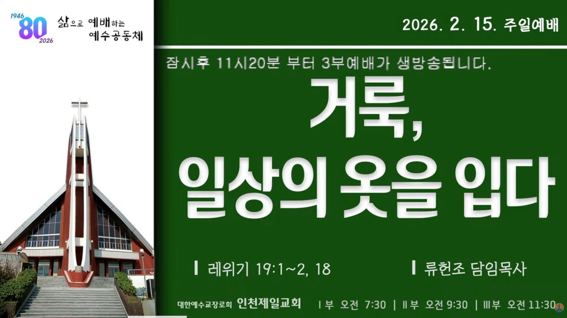 인천제일교회 주일 3부예배 (2026.2.15)