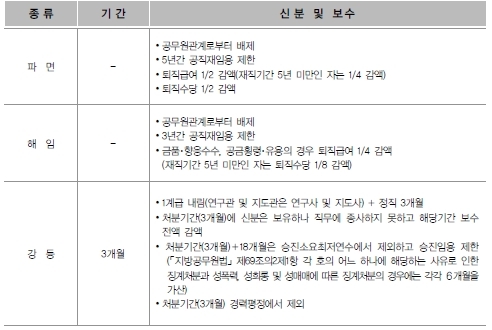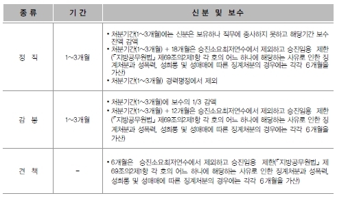 위 의무들을 위반하면 징계위원회를 거쳐 아래표의 징계를 받게 됩니다.