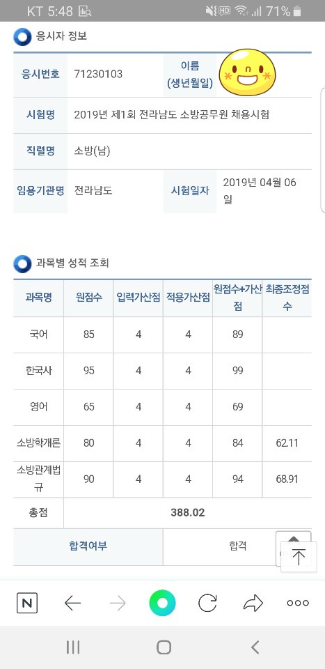 작성자롸용 작성시간 19.07.11 형문이 축하해~ 열심히 하더니 드디어 결실을 맺었네 같이 학원 다녔을때 초기에 수업도 길고 외울것도 많아서 쑥과 마늘먹고 백일만 힘내보자고 했었는데 정말 둘다 영어가 좋아졌지~영어로서는 인간이 된거 같아 ㅋㅋㅋㅋ 누나도 힘내서 열심히 해볼께 너도 소방서 들어가서 화이팅!