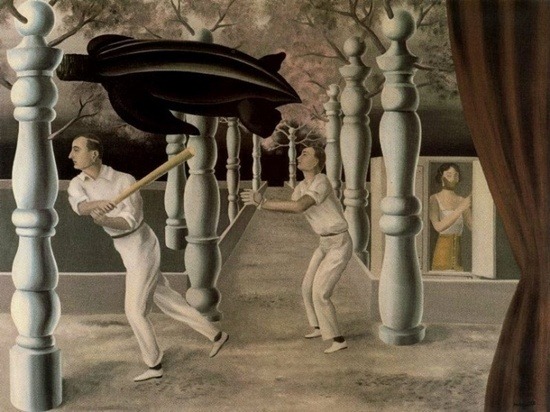 쾌감, 1927 1927년 숨겨진 경기자, 1927 마그리트의 <숨겨진 경기자>에서는 흰옷을 입은 두 사람이 수수께끼 같은 게임을 진지하게 하고 있다. 화면의 왼쪽 상단에 거북이로 보이는 형상이 떠있고, 오른편에 알 수 없는 여자가 네모난 공간에 들어있다. 그리고 화면 곳곳에 대형의 장기말 형태의 빌보케가 나타난다. 알 수 없는 이들의 조화는 낯선 이미지로 표현되며 초현실주의 특유의 당혹스러운 시적 효과를 이끌어내고 있다. 불가능한것의 시도, 1928 연인들, 1928 인간의 조건1, 1933 붉은 모델, 1935 통찰력, 1936 기쁨의 원리 (에드워드 제임스의초상), 1937 금지된 재현(에드워드 제임스의초상), 1937 그는 초현실주의적이지만 자신만의 개성이 두드러지는 작품들을 제작했다. 주로 우리의 주변에 있는 대상들을 매우 사실적으로 묘사하고 그것과는 전혀 다른 요소들을 작품안에 배치하는 방식인 데페이즈망(dépaysement) 기법을 사용하였다. 1950년대에는 그 전까지 했었던 작품들과는 완전히 다른 작품을 제작하기도 하는데, 인상주의시기의 르누아르의 영향을 받은 작품들과 바슈(vache)시기의 야수파의 영향을 받은 작품들이 제작되었다. 그의 작품들은 주로 신비한 분위기와 고정관념을 깨는 소재와 구조, 발상의 전환 등의 특징을 보이며 이러한 특징은 우리가 생각하는 모든 것들을 새로운 시선으로 바라보도록 한다. 마그리트의 작품들은 현대미술에서의 팝아트와 그래픽 디자인에 큰 영향을 주었고, 대중매체의 많은 영역에서 영감의 원천이 되고 있다. 영화 '매트릭스'는 《겨울비(Golconde)》(1953)이라는 작품에서 영감을 받았고, 만화영화 '하울의 움직이는 성'은 《피레네의 성(Le chateau des Pyrenees)》(1959)과 《올마이어의 성(Almayer's Folly)》(1951)에서 모티브를 얻었다. 주요 작품에는 《연인들 The Lovers》(1928), 《이미지의 배반 The Treachery of Images》(1929), 《인간 조건 The Human Condition》(1933), 《빛의 제국 2 The Empire of Light II》(1950), 《붉은 모델 The Red Model》(1953), 《중산모를 쓴 남자 The Man in the Bowler Hat》(1964) 등이 있다.