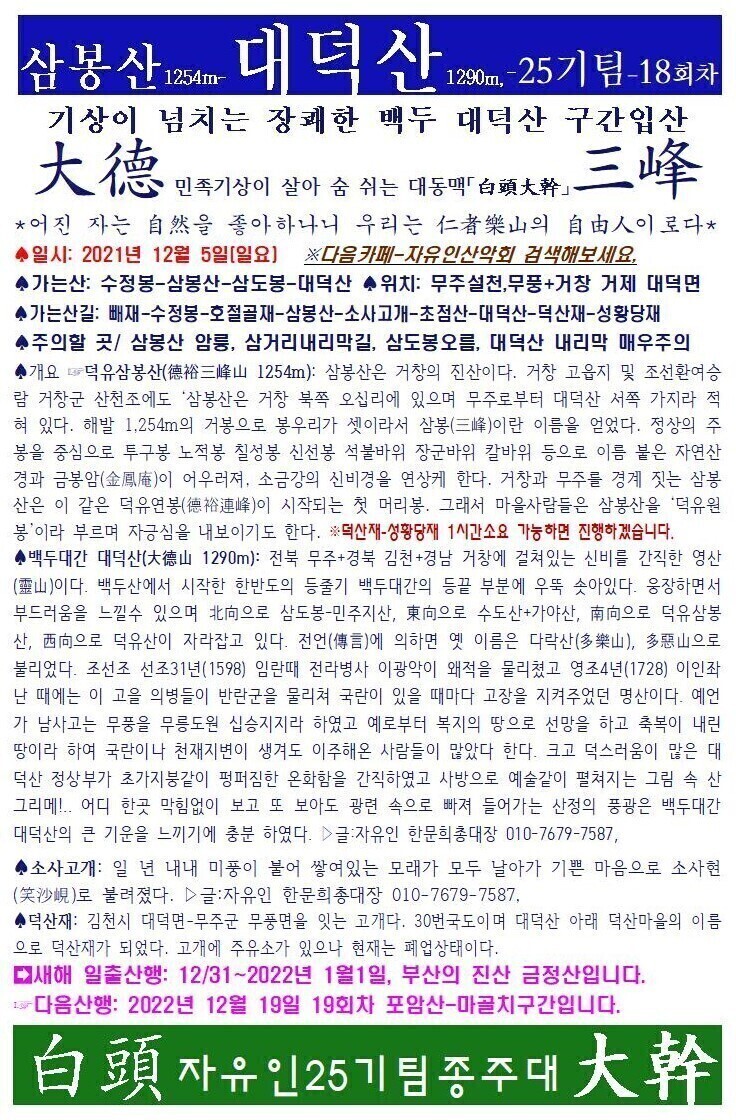 大韓民國 白頭大幹 덕유삼봉산에서 - 자유인 25기 백두대간종주대,