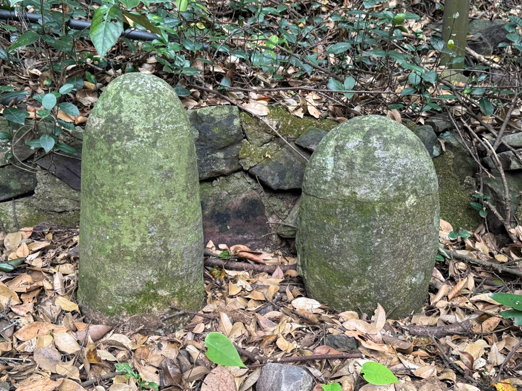 홍도 청어미륵(죽항미륵). 홍도에서 흔히볼수 있는 매끈한 형태의 돌을 2기 모셔놓은 형태지만 홍도 주민들은 이를 남미륵 여미륵이라 부른다.