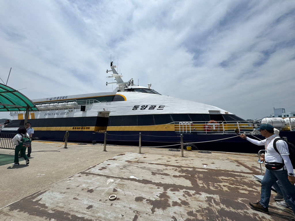 쾌속선. 빠르긴한데 승선 후에는 바깥 풍경을 볼 수 없는 것이 아쉽다.
