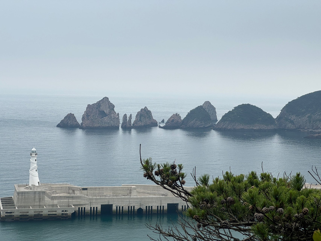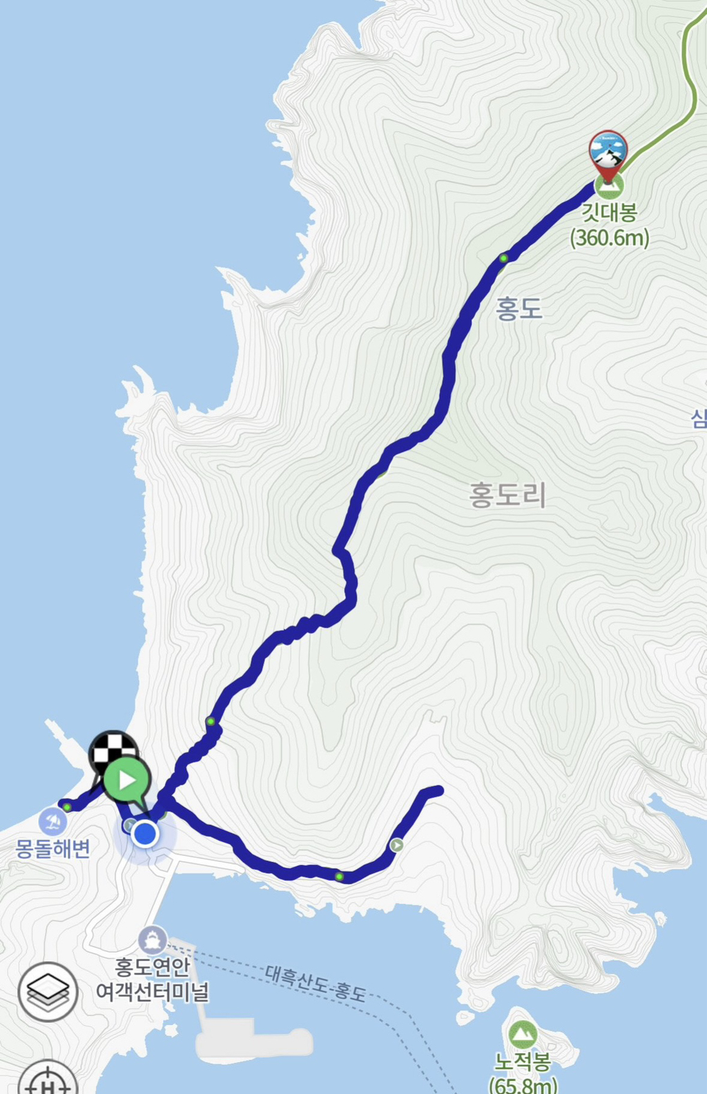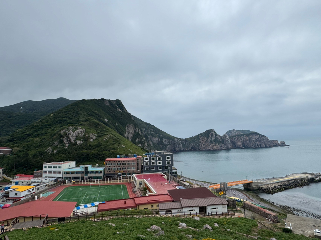 홍도 터미널에 하선 후 바라 본 항. 숙소 배정 후 깃대봉을 향하다.