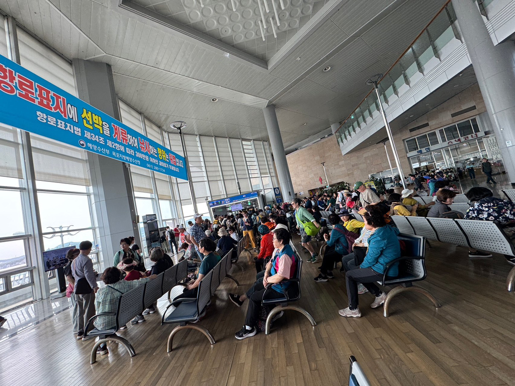 대기 승객이 북적이는 터미널. 홍도 입도 승객이 하루 1,500~2,000명 정도며 6대의 쾌속선이 운항중이라 한다.