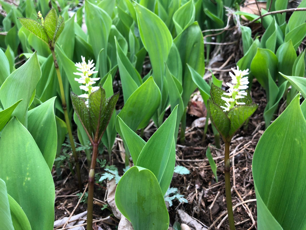 은방울꽃 무리 속에 홀아비꽃대가 꽃을 피우고 있다. 은방울꽃도 꽃망울을 터트리기 직전이다.