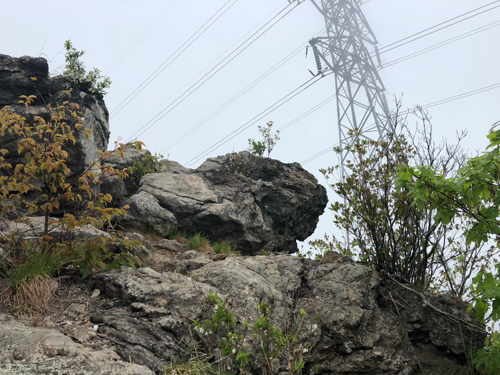 10:35 어디서 날아 온 듯한 메주바위. 수원산은 안개에 잠기고 솔잎 하나하나에 물방울이 맺혀 참나무 낙엽 위로 떨어져 촉촉히 적셔 주고 있다