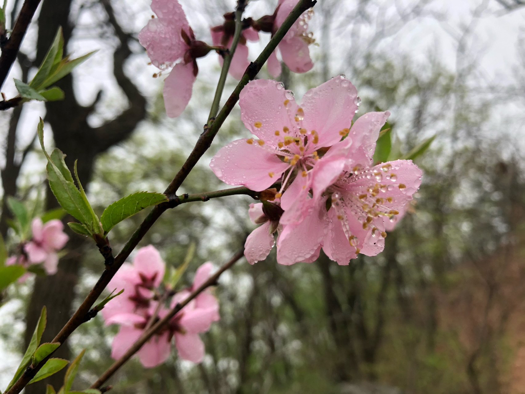 복사꽃. 장미과 벚나무속. 잎겨드랑이에 피는 꽃은 지난 해에 자란 어린 줄기를 따라 마디마다 1송이씩 피거나 2~3개가 모여 핀다.