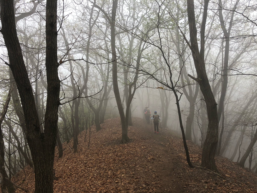 11:29 안개는 더욱 짙어지고 목적지에 도착시간은 미궁속으로. 쉬지 않고 가도 앞 사람 뒷 모습이 보이지 않는다. 안개 때문인가?
