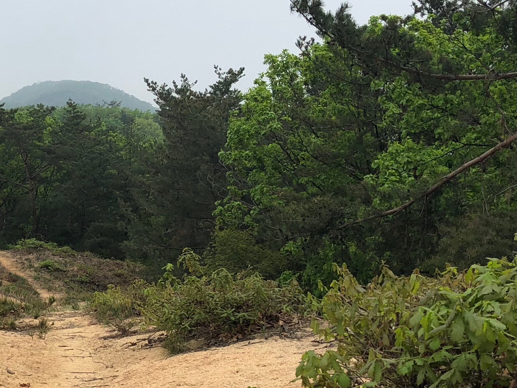 08:46 부대 철조망을 따라가다...멀어지다... 날씨가 흐려 조망은 좋지 않지만 녹색의 싱그러움은 걷는이의 마음을 줄겁게 한다.