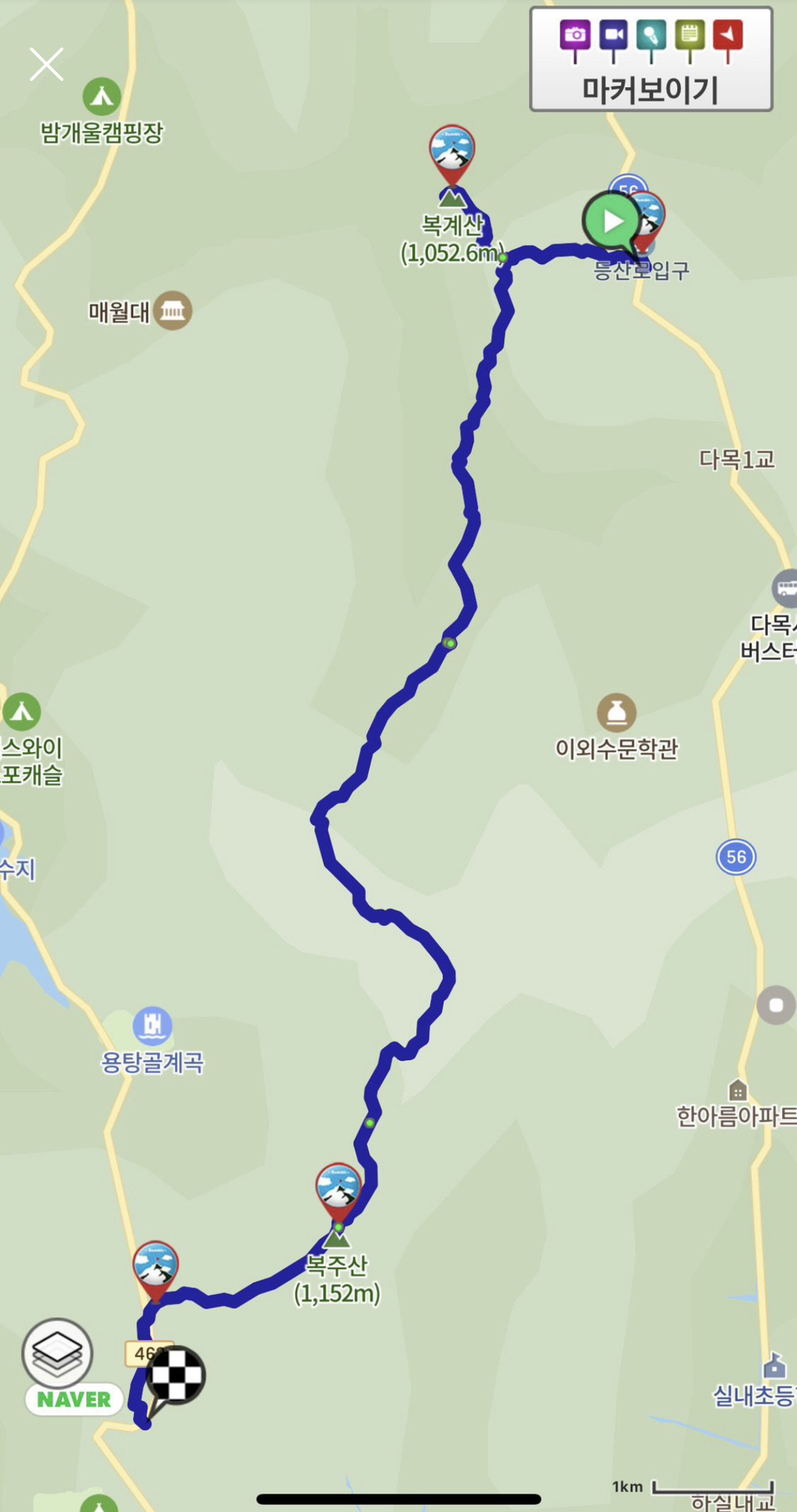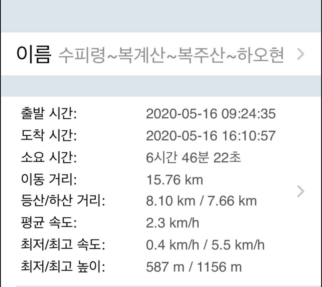 *진행코스: 수피령~복계산갈림길~복계산왕복~복주산~하오현(14.8km)~하오터널앞(1km)