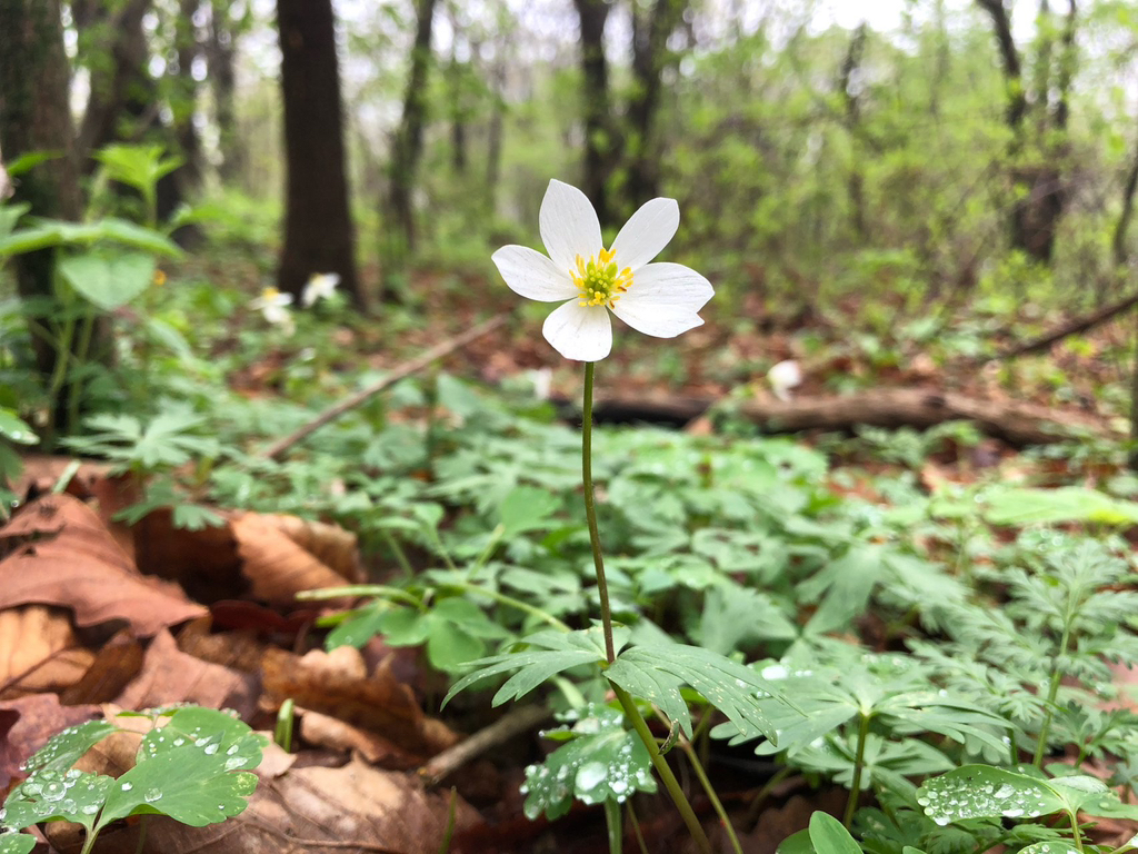 홀아비바람꽃. 높은 산이나 숲속 깊은 곳에서 자라는 여러해살이풀. 홀아비라는 이름이 붙은 이 꽃 역시 꽃대가 하나. 꽃줄기에는 긴 털이 있다.