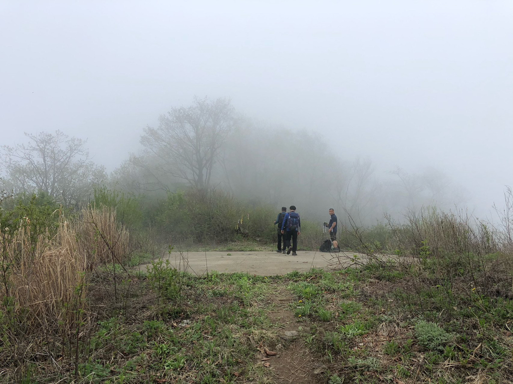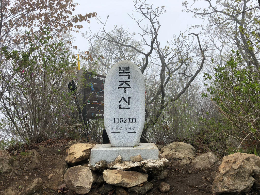 10:33 복계산(1,057m). 철원 지역에서 북한 지역이 내려다보이는 3대 명산이라고 하는데 안개 때문에 주위 조망이 전혀 보이지 않는다.