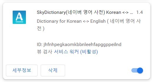 우선 같은 네이버 사전인 아래 SkyDictionary 확장프로그램을 추가해서 이용하세요.