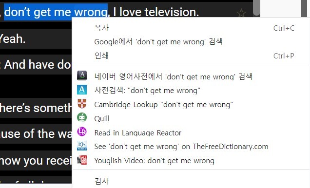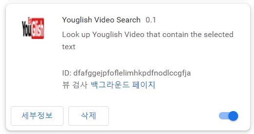 아래와 같은 영영사전과 YouGlish 등 확장 프로그램도 추가하면 쓸만합니다.
