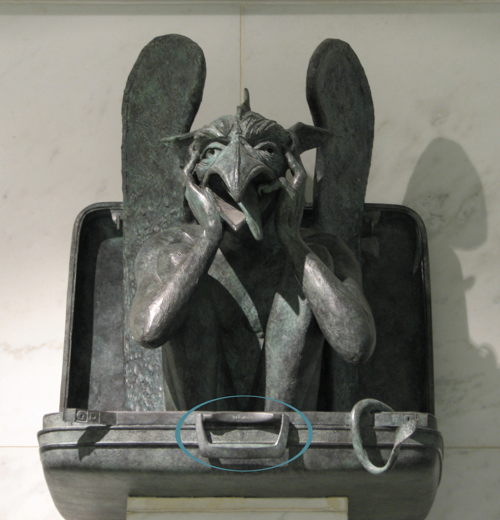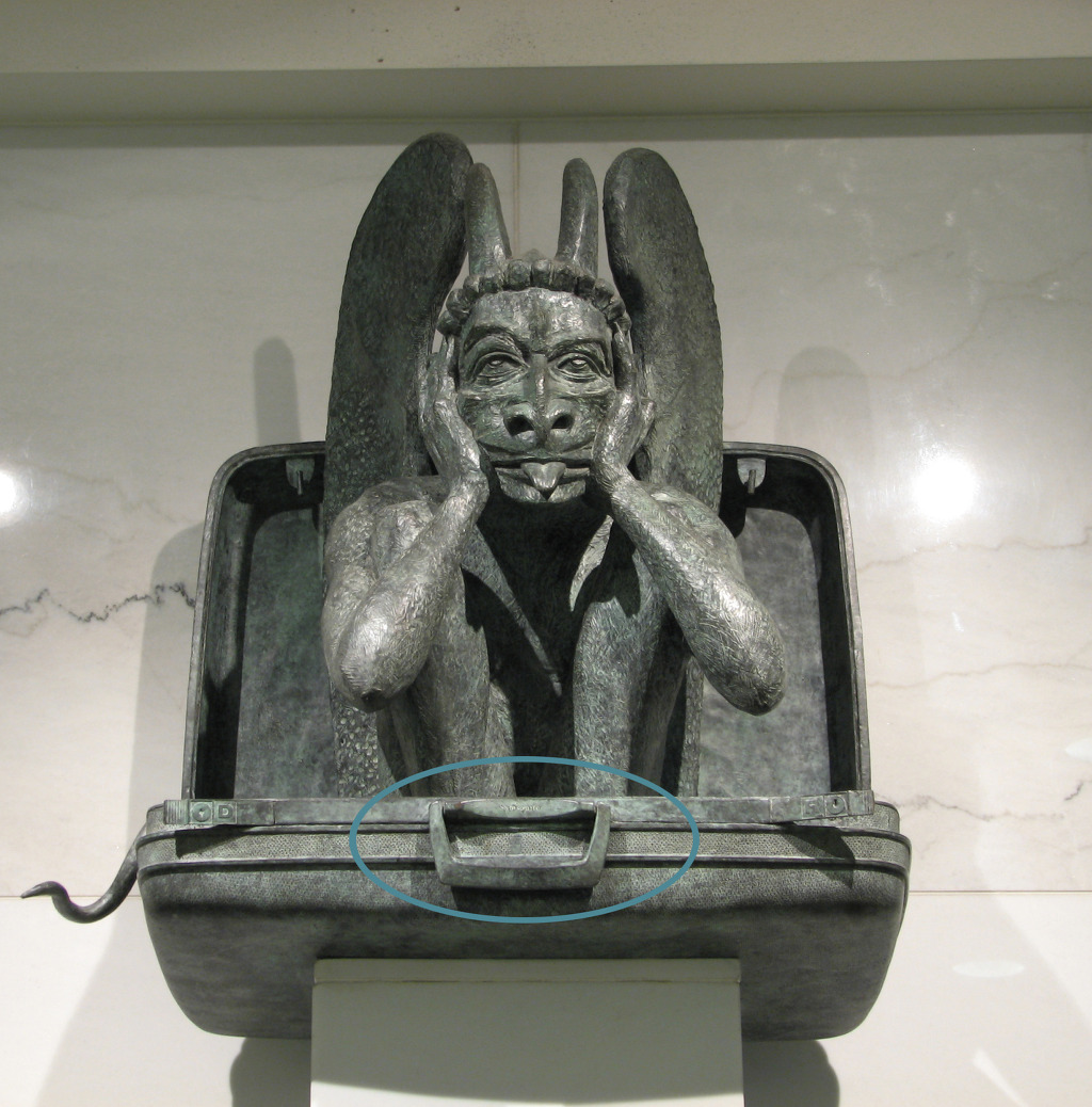 덴버공항에는 또 2기의 가고일(Gargoyle)이 놓여 있다. 가고일이란 괴물의 형상을 한 전설적인 요괴로 파리 노틀담사원에 악마가 더 이상 교회에 침범하지 못하도록 하는 역할을 지닌 바로 그 가고일 2기가 덴버공항에 있다. 생긴 모양이 흉악스러워서 친밀감을 느끼는 사람은 아마도 없을 것이다. 그런데 왜 이런 그로테스크한 형상의 조각상이 공항에 있는 것일까?