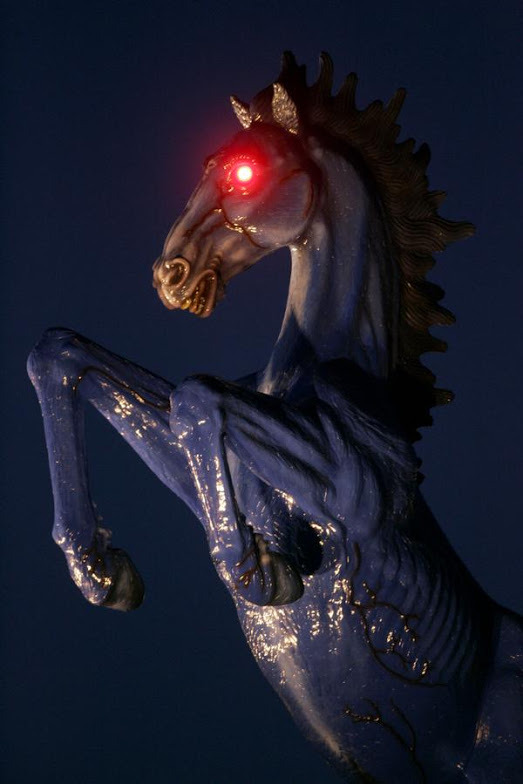 공항 앞에는‘푸른 야생마’조각상이 세워져있는데 이것이 저주(咀呪)를 뜻한다는 이야기다.