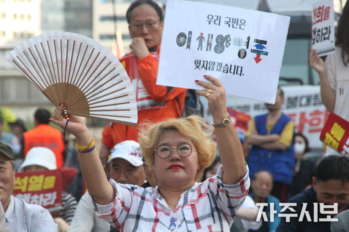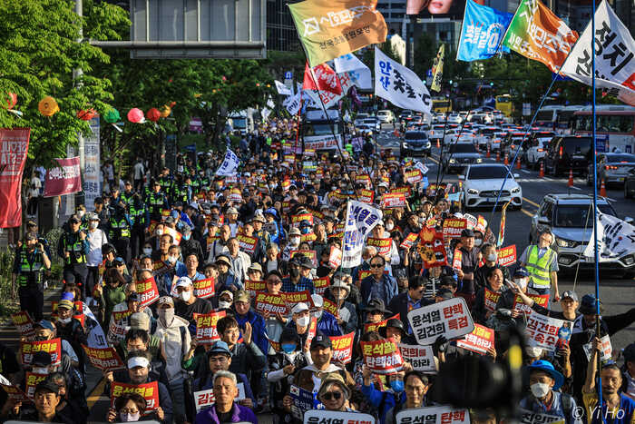 시위 행렬 옆에서 구경하던 영등포구에서 온 40대 부부와 대화를 나눠보았다.