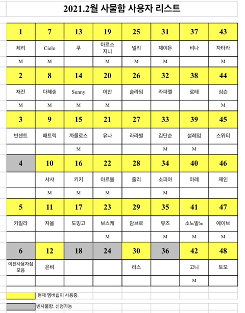 매달 멤버쉽신청때 빈 사물함에 대한 사용신청을 받을 예정입니다.