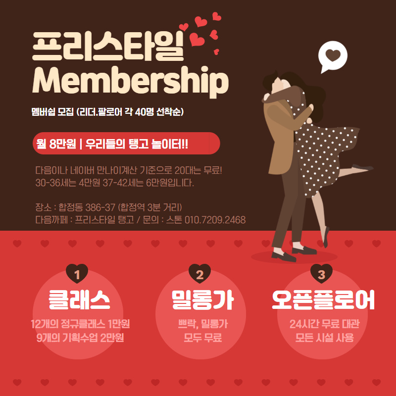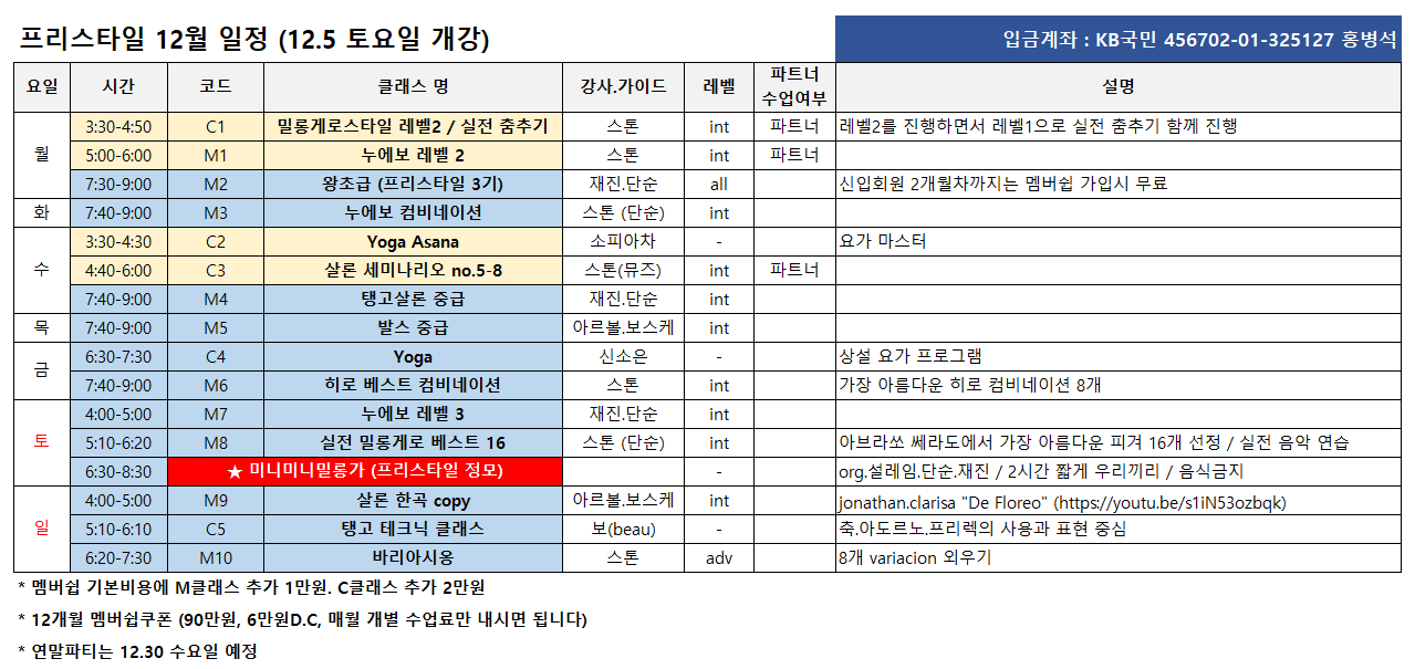 12월 한달 스윙.살사와 다른 밀롱가 가지 않고 업무적으로 위험이 없는 분들의 신청 바랍니다.