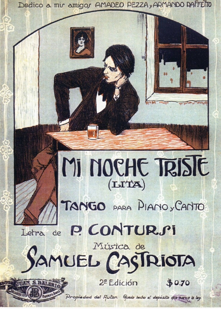 - 꼰뜨루시는 1916-1917년 경 몬테비데오에서 2인조 포크 가수를 만났는데, 그들이 바로 당시 아르헨티나 쇼 무대에서 가장 핫했던 듀오 까를로스 가르델Carlos Gardel과 호세 라싸노José Razzano였다. 가르델은 꼰뜨루시가 쓴 <Lita>의 가사가 마음에 들어, 얼마 후 <Mi noche triste(나의 슬픈 밤)>로 제목을 바꿔 공연에서도 부르고 음반도 녹음했다. 하지만 아직까지 까를로스 가르델은 포크 음악으로 국내에서 인기를 누리며 만족하고 있었고, 자신이 레전드 땅고 가수이자 20세기 남미 최고의 대중가수가 되리라는 걸 알 도리도 없었기에, 그가 온전히 땅고 가수로 전향하는 것은 1920년대 초가 되어서였다. 1910년대까지는 아직 가르델-라싸노 듀오를 비롯한 포크/컨트리 뮤지션들이 아르헨티나 음악계를 주름잡고 있던 시기였다. 하지만 포크 음악은 이제 곧 황금기를 맞이한 땅고에 최고의 자리를 내줄 운명이었다.